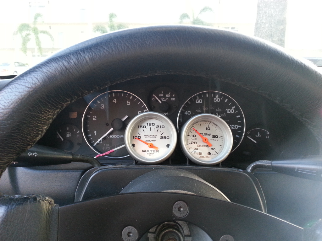If you get Prosport gauges you don't really need to put them in your line of sight. They have audible alarms and the gauge flashes. It was pretty sweet to know my car wasn't making oil pressure before I really did damage.