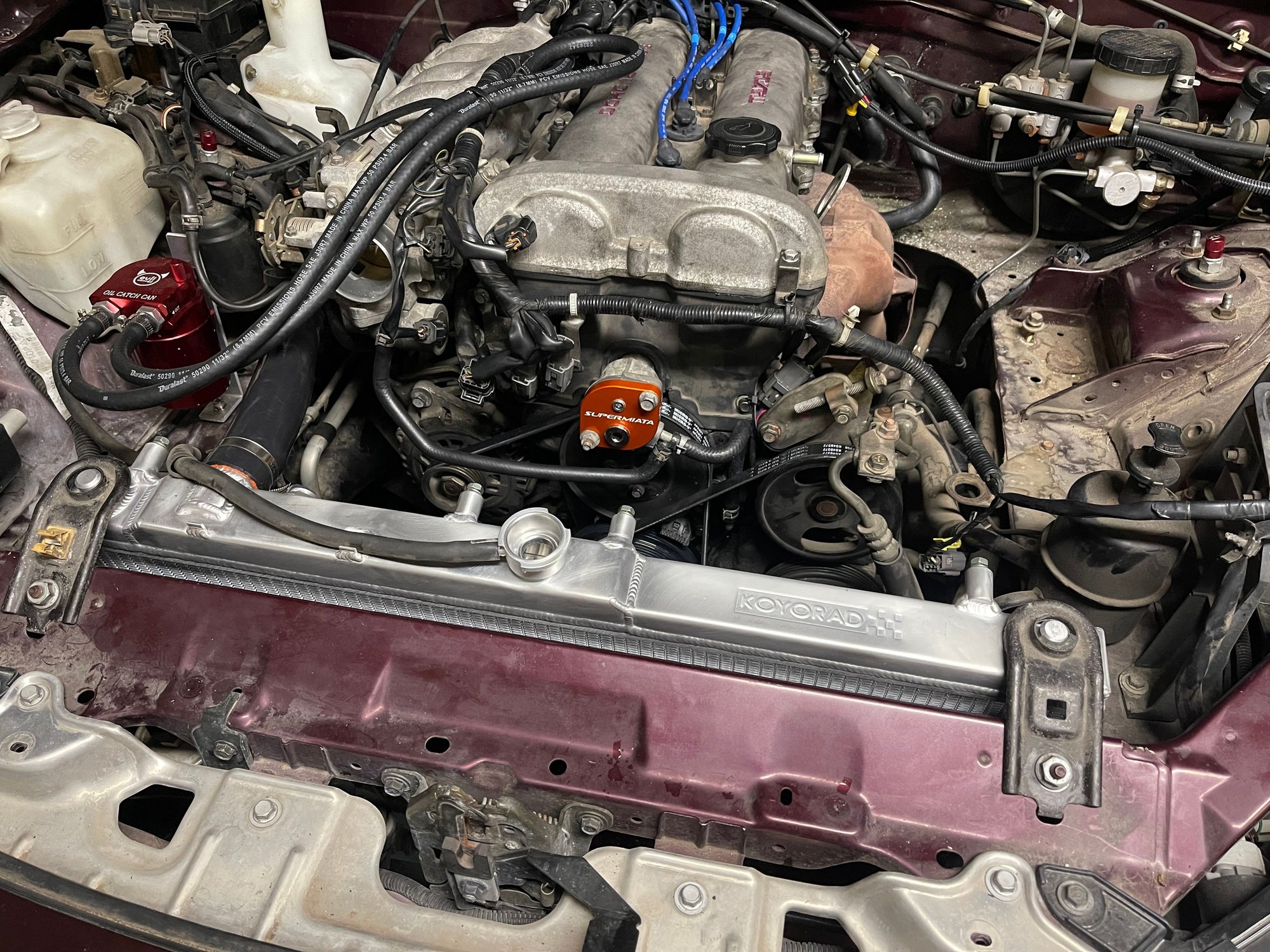 Now just need to top off the coolant after some time, add more shielding to the upper radiator hose, and secure some of the wires around the car.