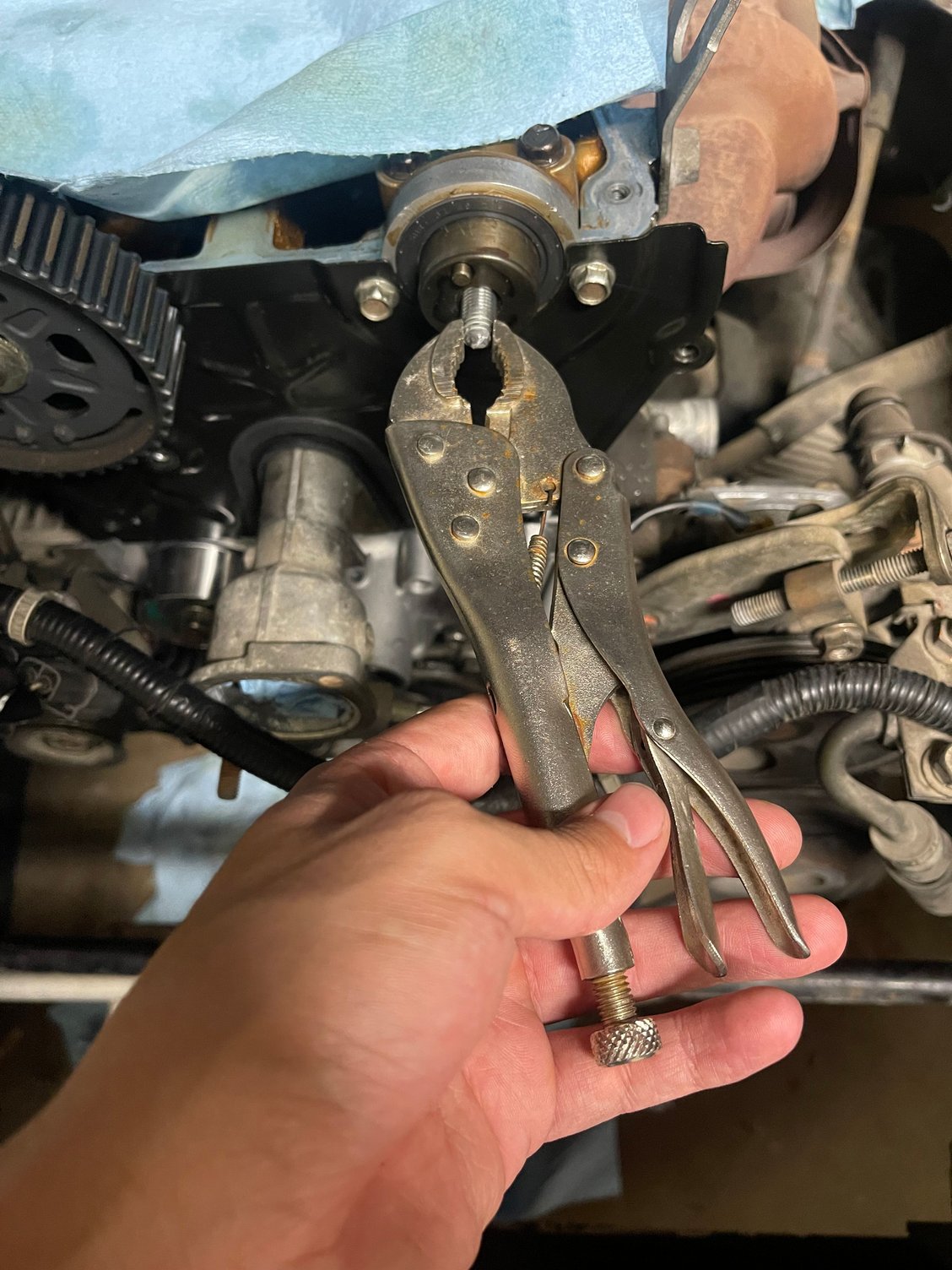 I’m currently stuck with the intake cam gear bolt not budging and looking for a way to pull the seal off the crank. Open to any advice. I tried loosening the cam bolt using an adjustable wrench on the cam but it still slipped & rounded a bit off of one of the hexes.