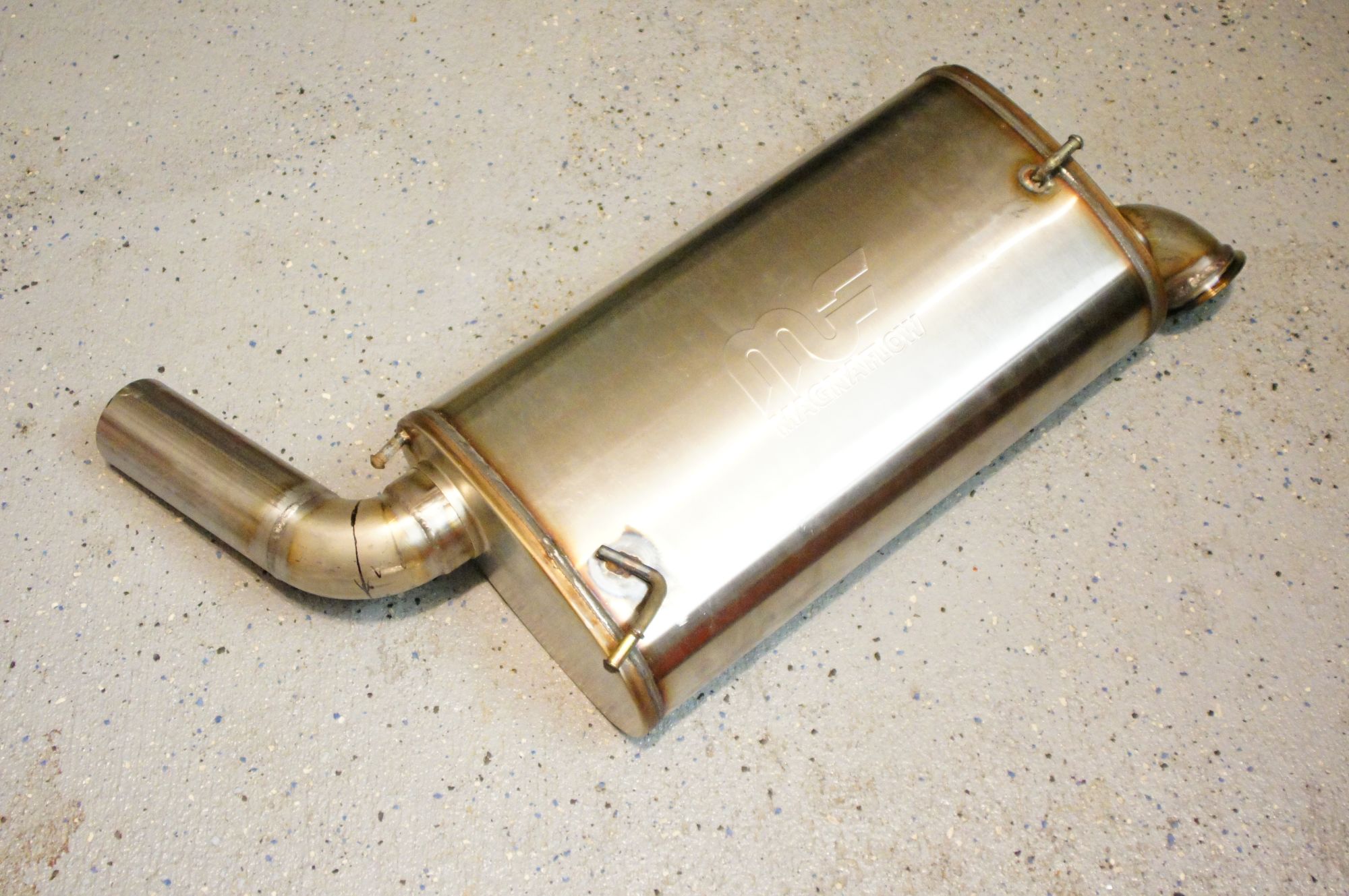I trimmed the stock exhaust hangers down and reused them on the magnaflow muffler