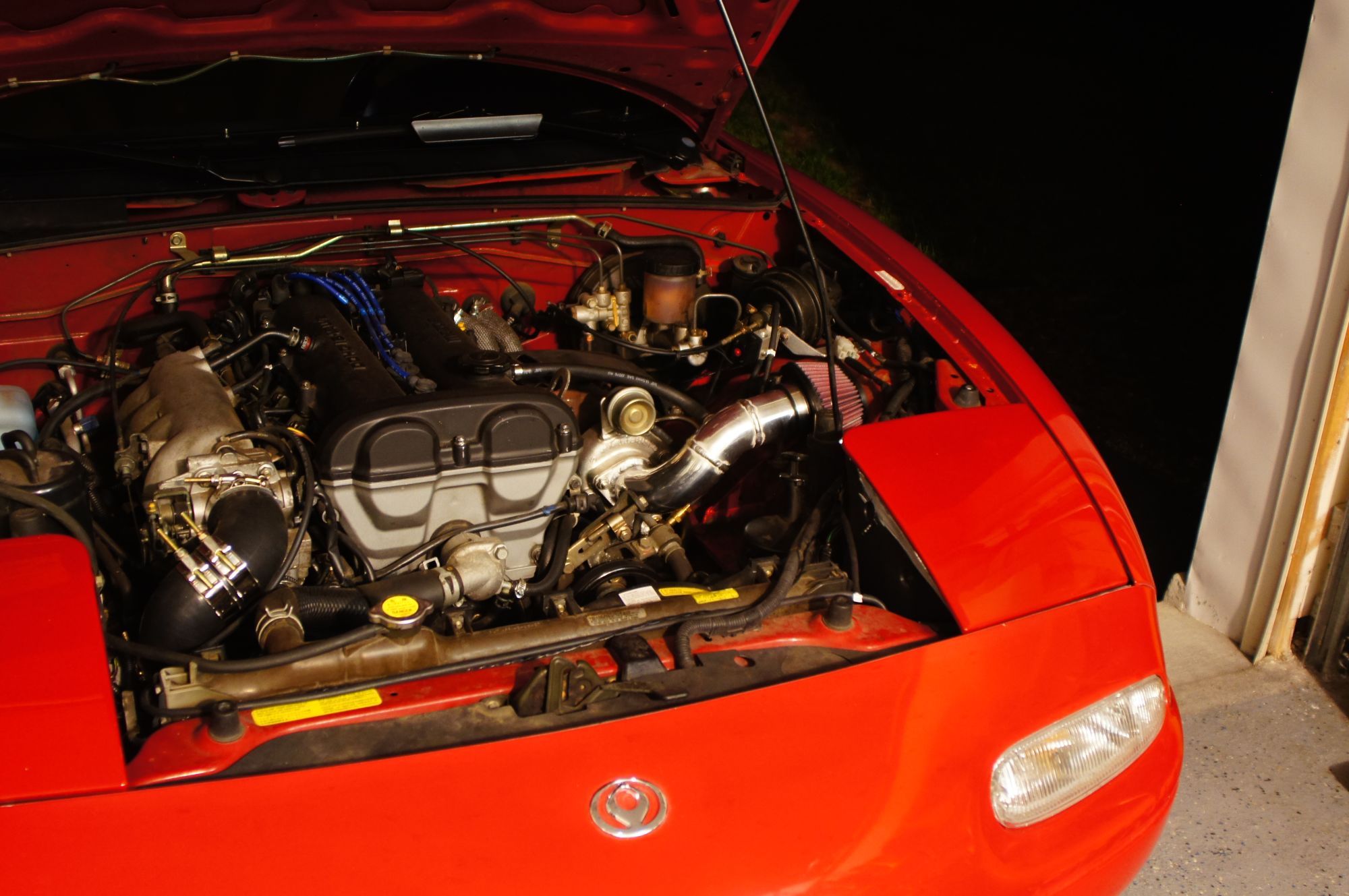 I injured my thumb, had vacation, and became otherwise busy for the next few weeks. Today I revisited the miata with a new idea: the intercooler is restricting flow. I simply replaced the intercooler with a straight piece of pipe and it was like magic. I suddenly had boost again.