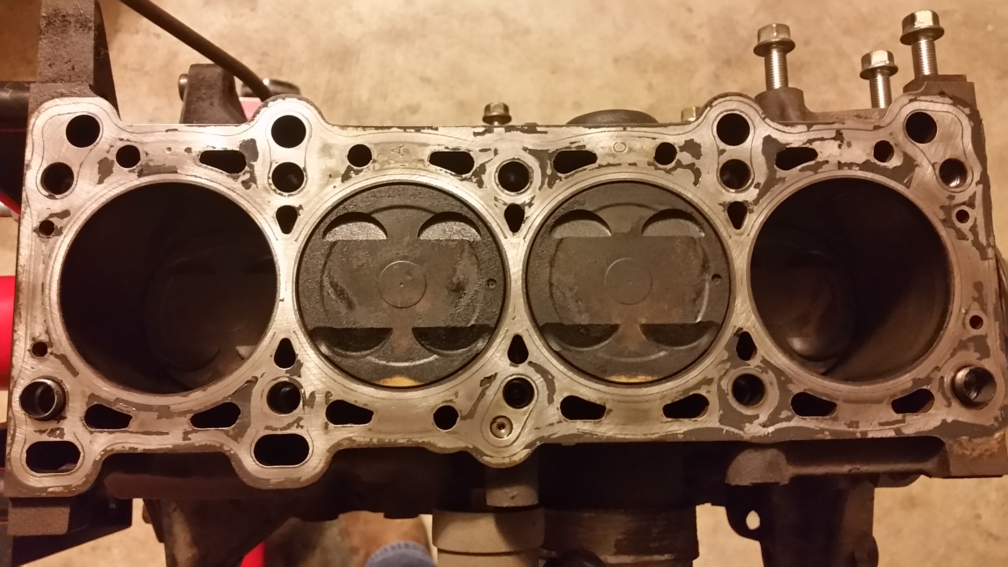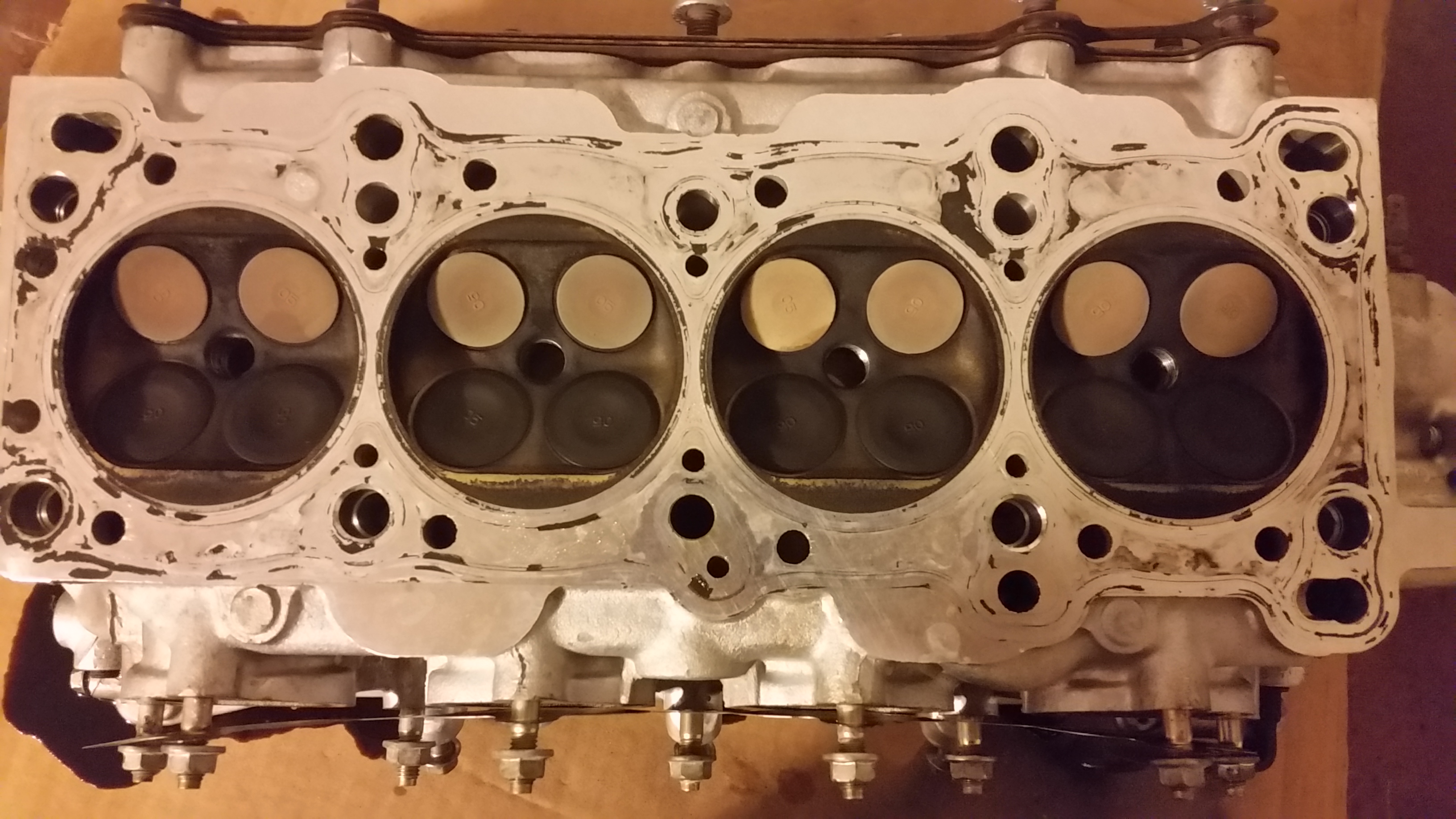 While the block, head, cylinders, and valves were very dirty, my untrained eye didn't see any obvious signs of damage. Please let me know if you spot something out of the ordinary.