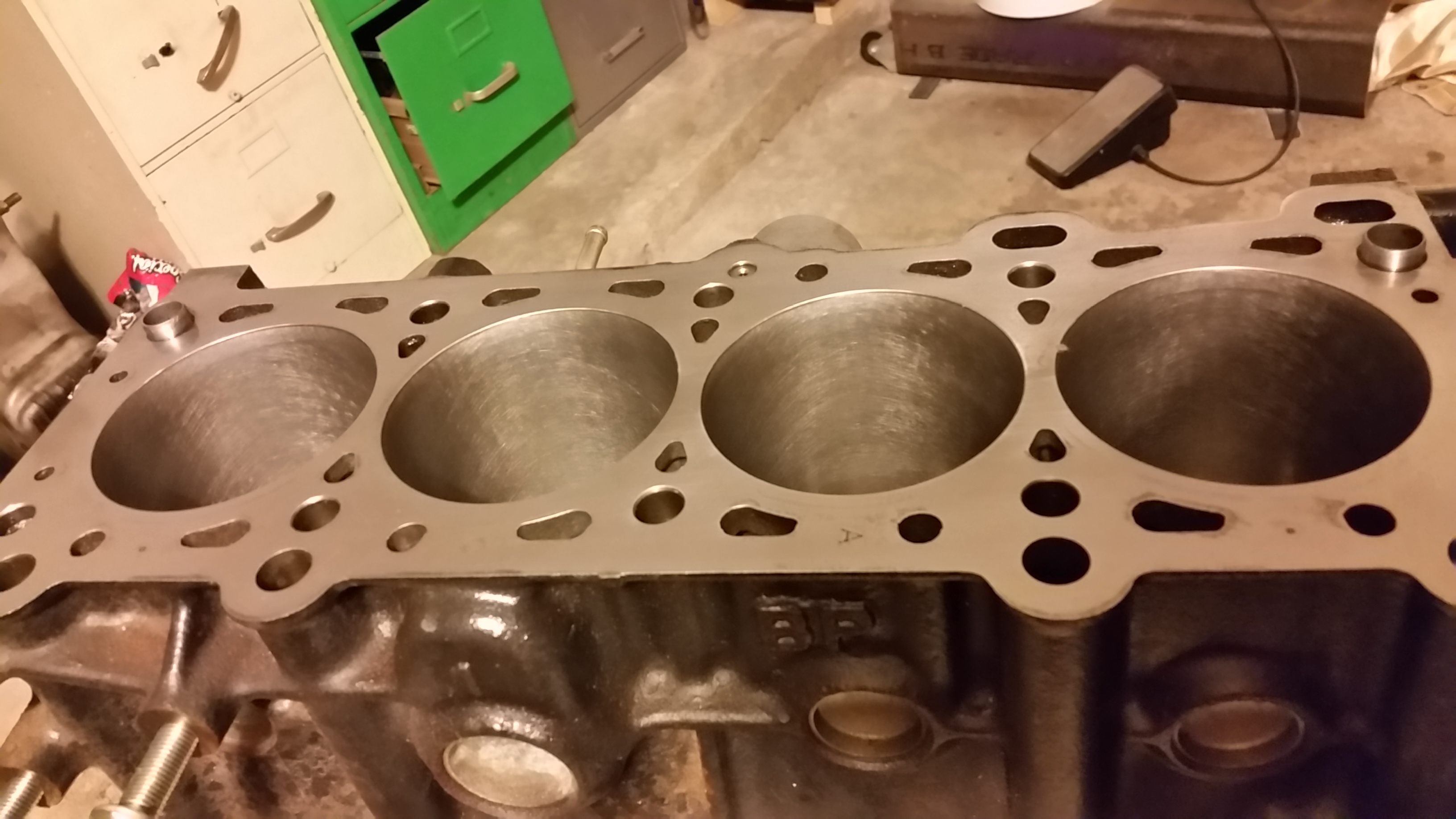 After that, I could not hold boost above 8 psi. A dry compression test showed all four cylinders under 120psi. Wet compression test improved numbers dramatically, and a leak down test confirmed that the piston rings were leaking compression. The car was at least still running, and life was busy so I put off a rebuild for the time being. I've since moved to FL, and now have a much larger garage space and more time on my hands. Time to dig into the motor to see what the problem is.