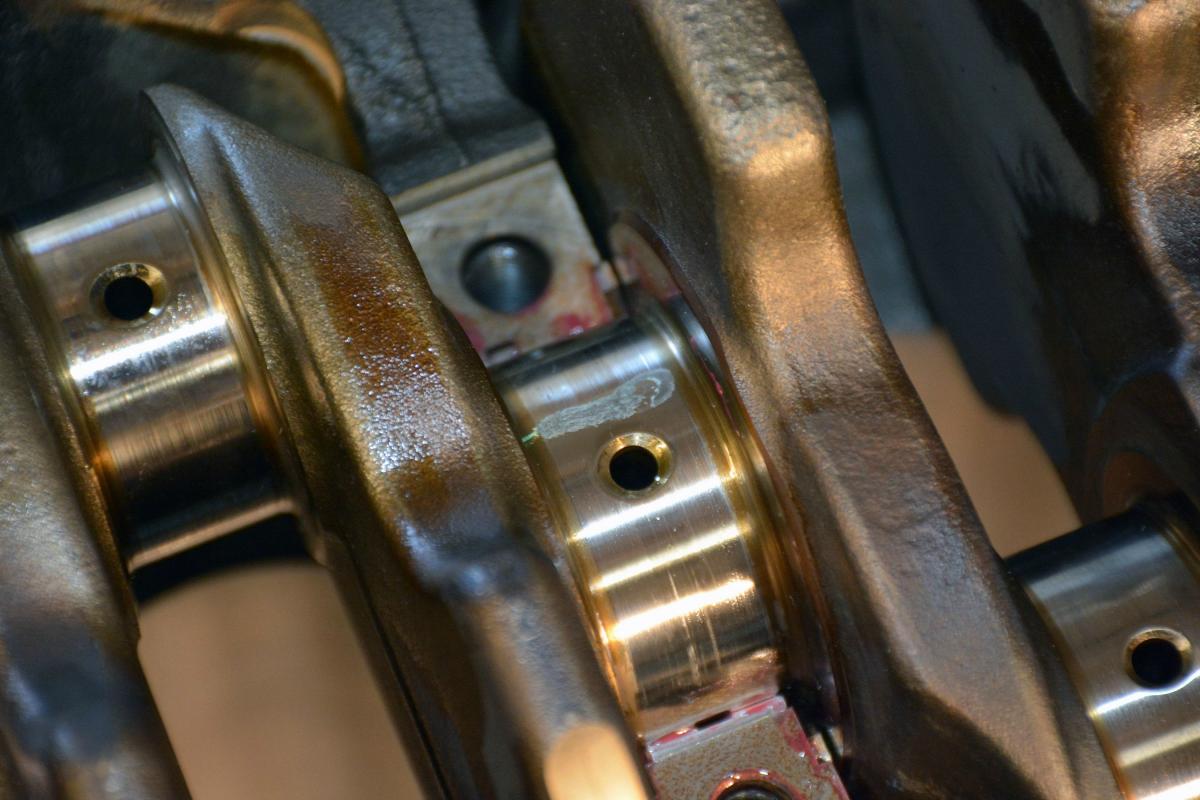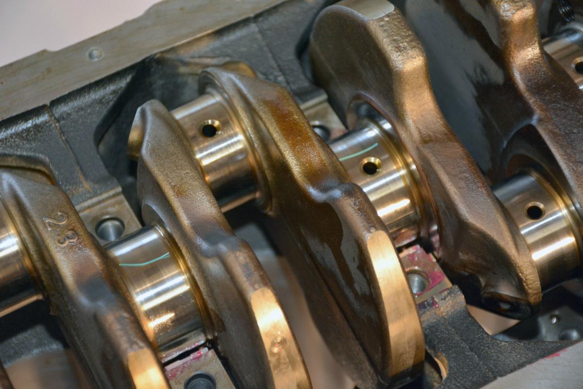 It's kind of hard to see in the pictures, but the tiny green strips are the plastigauge before torquing the main caps down.