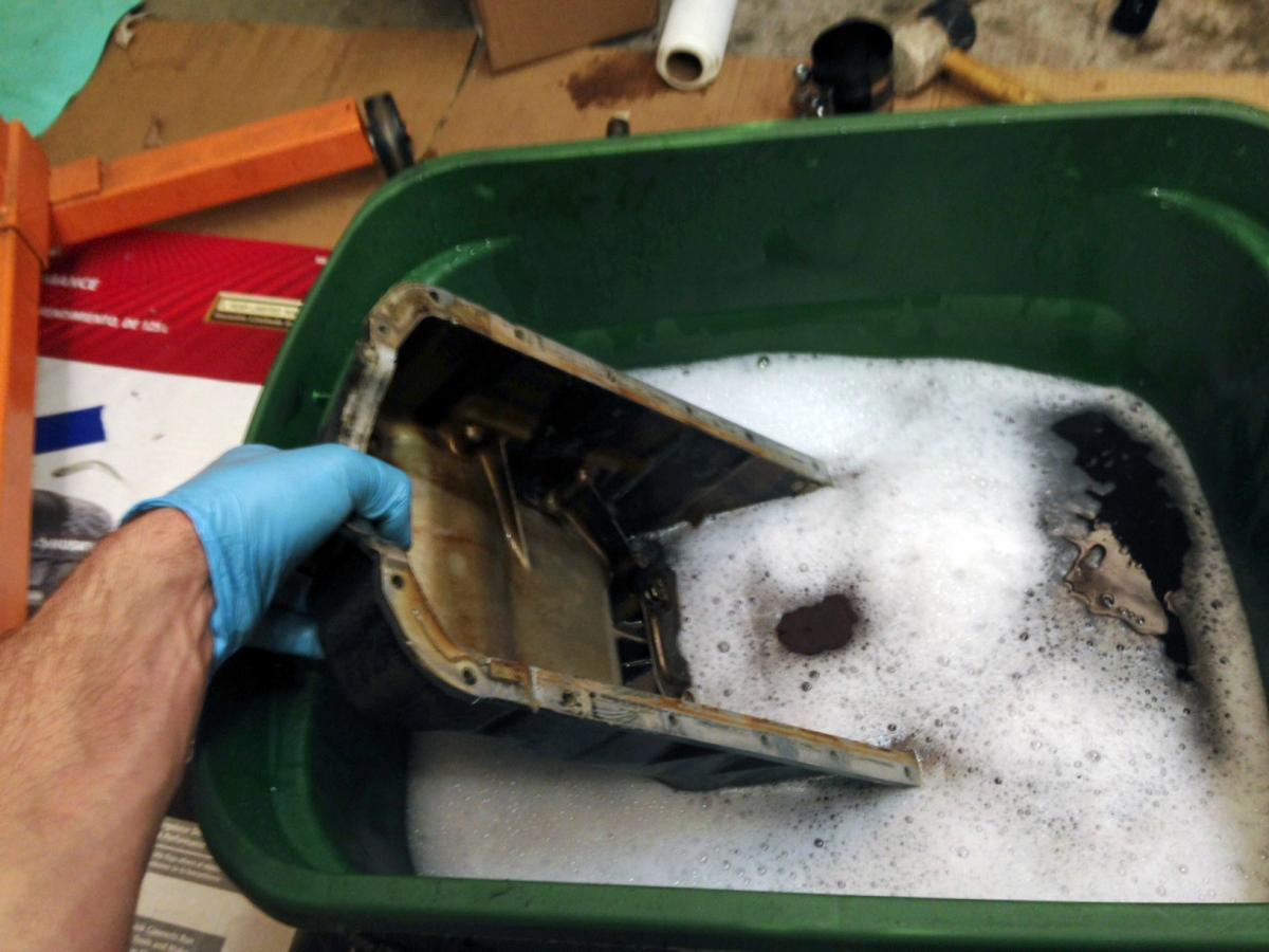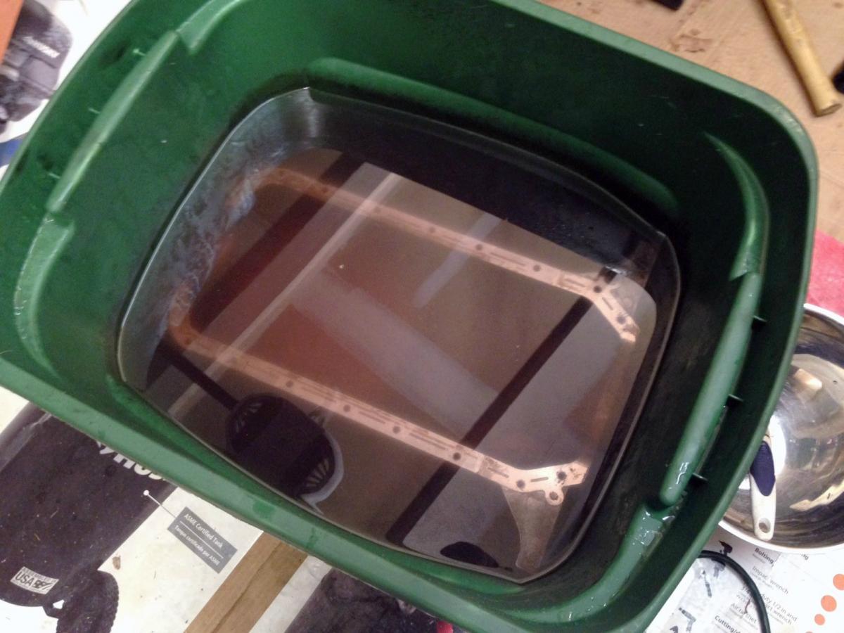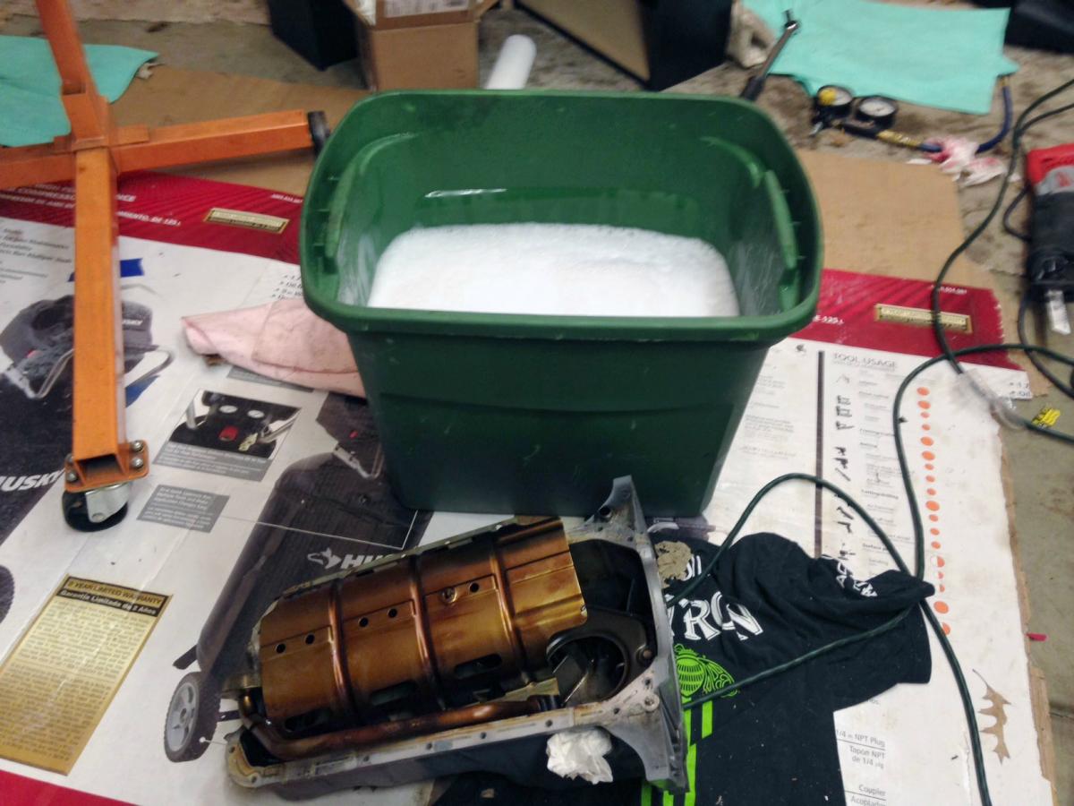 The pan is currently soaking. I'm not Jeffbucc, so I generally hate this part. I would rather assemble engine then clean engine.