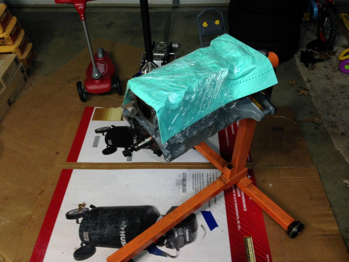 So, since the engine is waiting for ancillary parts to be cleaned, it's all wrapped up and ready for bed.