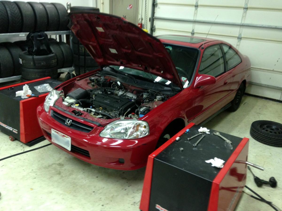 My daily is a 2000 Civic EX that I swapped an "ITS" prepped B16 into. I had been running an off-the-shelf Hondata "stock b16" tune, and apparently it was pretty close as I was only able to pick up ~5whp peak, and only a 2-4 throughout the rev range.