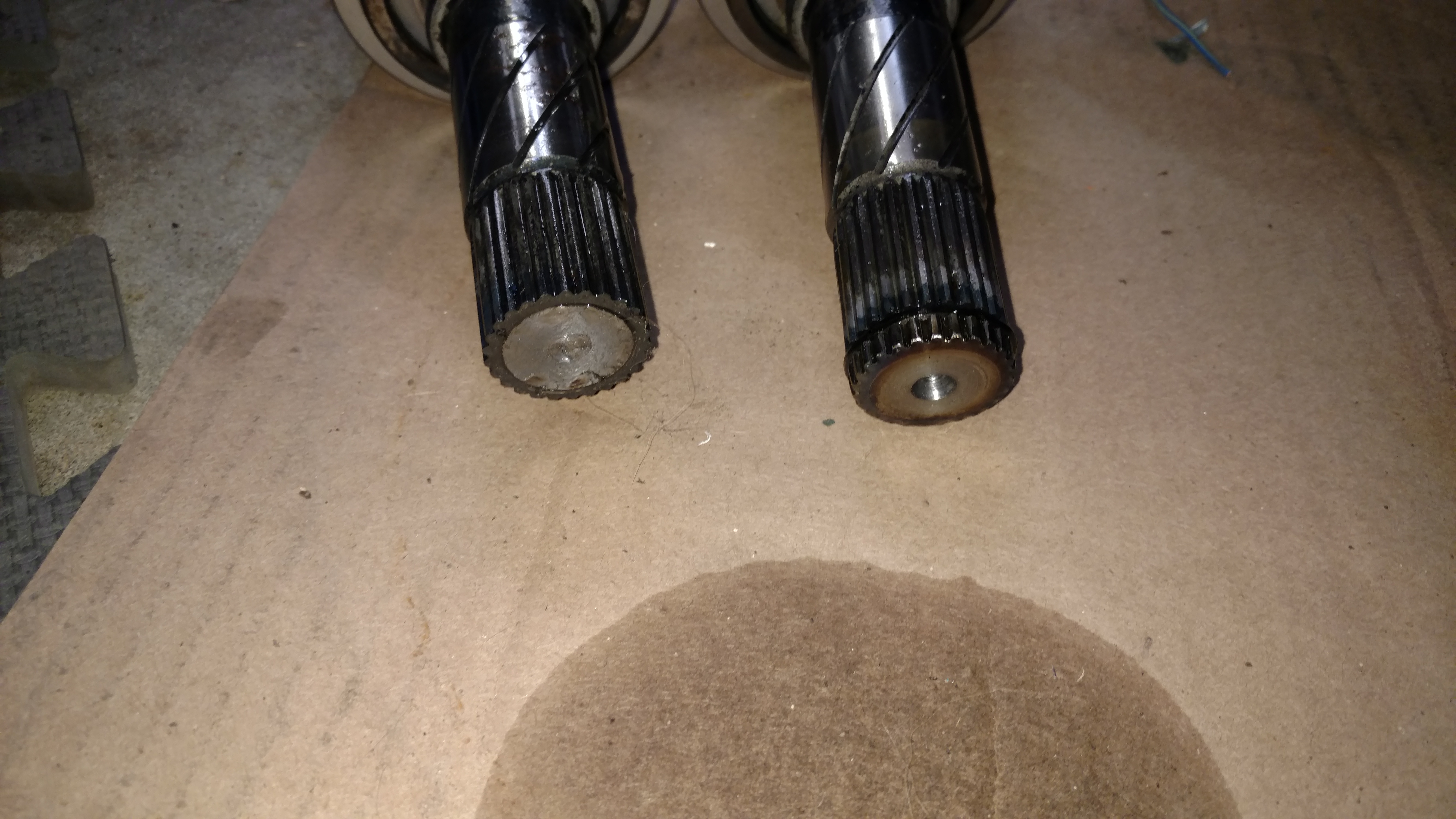 Interesting failure indeed. Did you hit a yump just before it failed or something? IIRC Jason did that once, popped the axle most of the way out, and then it stripped the splines off the end of it.