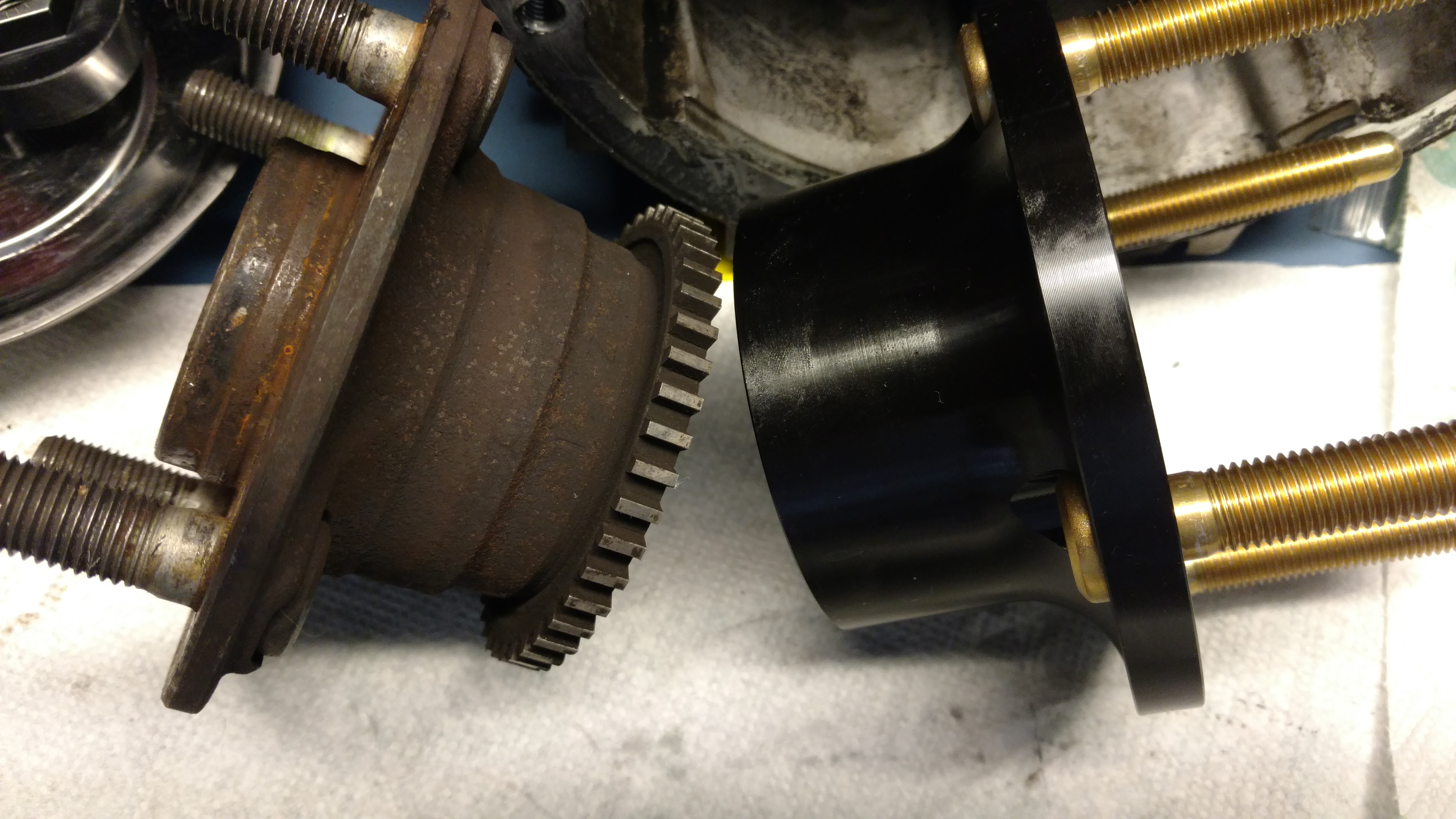This type of work is all unknown to me, so I don't know when things become too thin. The hub at that location is only supporting the grease seal, so it's not loadbearing. So possibly could take the OD of the hub down to 74.5mm, and the ID of the ring up to 74.5mm. THat leaves me with a 2mm thick hub and a 1mm thick ring, roughly.