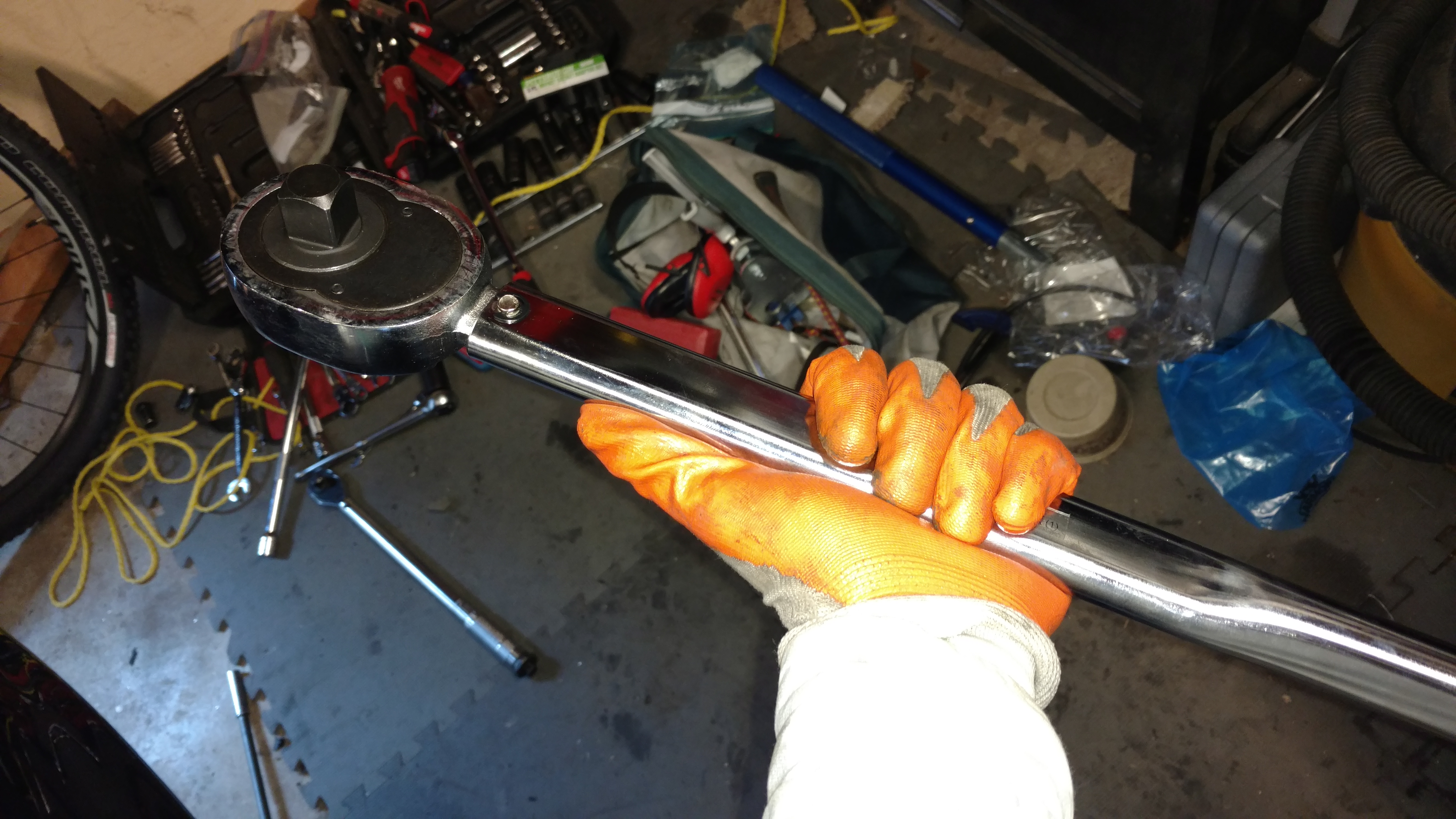 Drivetrain is once again complete, everything is on and filled with fluids and torqued. Used OEM axles this time. I went and got the HF 3/4" torque wrench, which goes to 300 ftlb, to properly torque the rear hubs. Makes a big ole manly click when it clicks at 250 ft lbs. Exhaust is on as well.