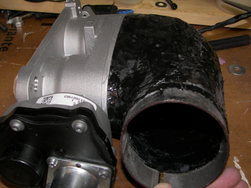 Q: So you're custom coupler for the dual TB is only some fiberglass mesh and blue RTV?