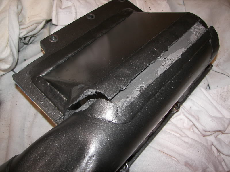 Ok, actually, I made a couple errors in judgement.First off, I have had good results, using glue to hold things together. (I work for a speaker manufacturer, and speakers are held together with just glue, so am exposed to this thinking regularly). So anyway, I decided to push the envelope a bit further and decided to hold the SC outlet manifold together with glue. Oh, I used fasteners as well, but obviously not enough. Shortly after getting the car on the road, I ended up with this.