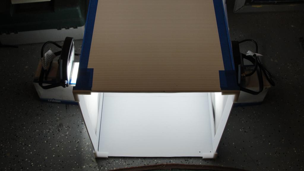 Tried my hand at making a light box. Still needs some modifications (like a better backdrop), but it works decently. Incandescents would probably give a better spread of light too.