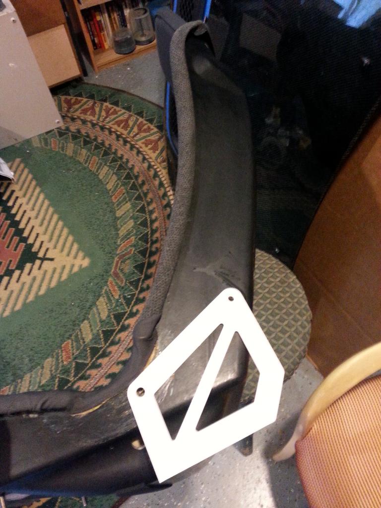 One of the things I've been working on lately is getting my Elise seat mounted. After much reading and some quick measurements, I made a bracket design for the seat. Here's a test piece I made from plastic: