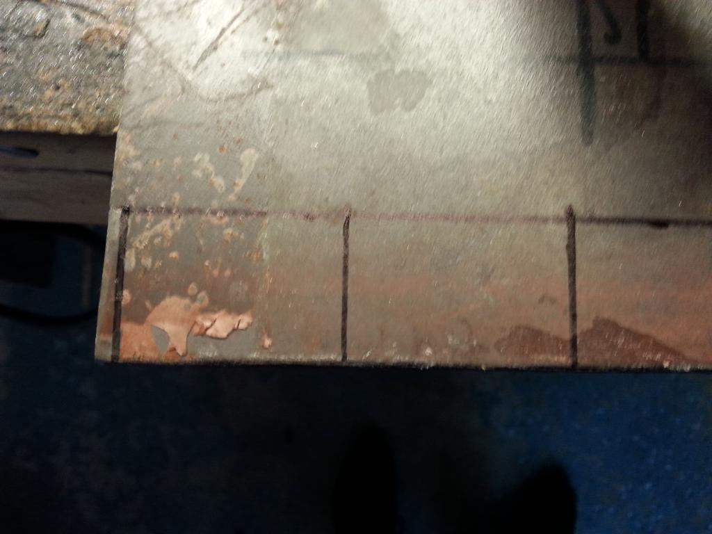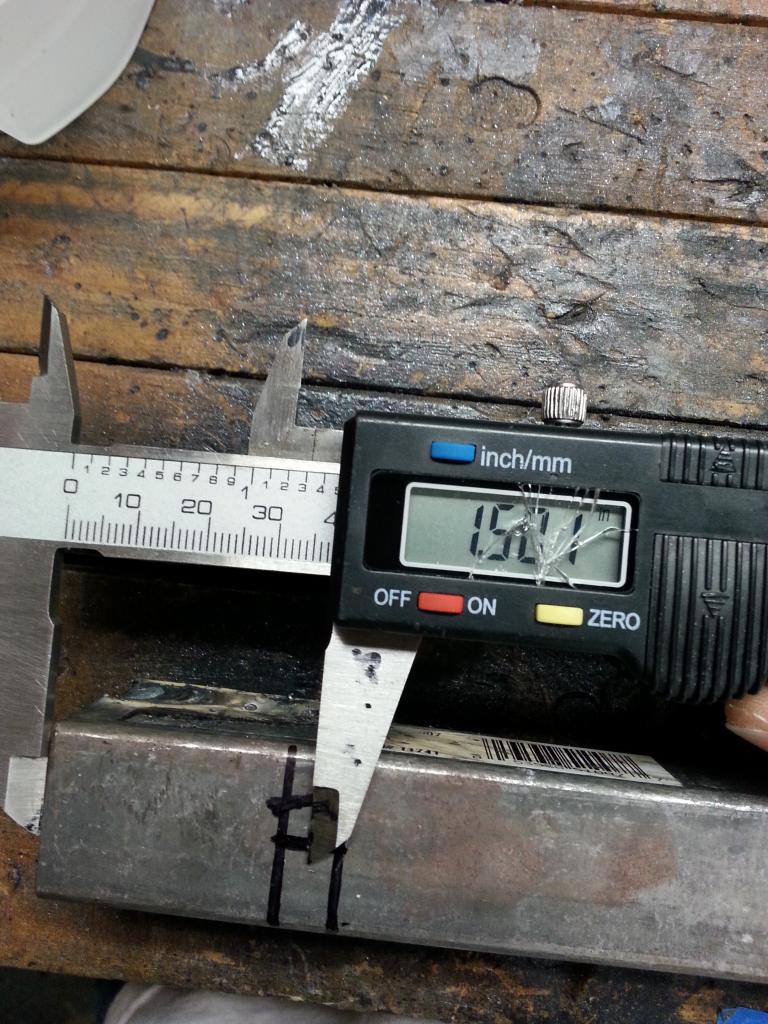 With that done, I marked and drilled the holes. I provided a measurement for reference, but if you do this, I suggest you test fit and double check (never mind the cracked caliper screen, I left it in the student machine shop back when I was doing my Master's and some undergrad clowns dropped it...)