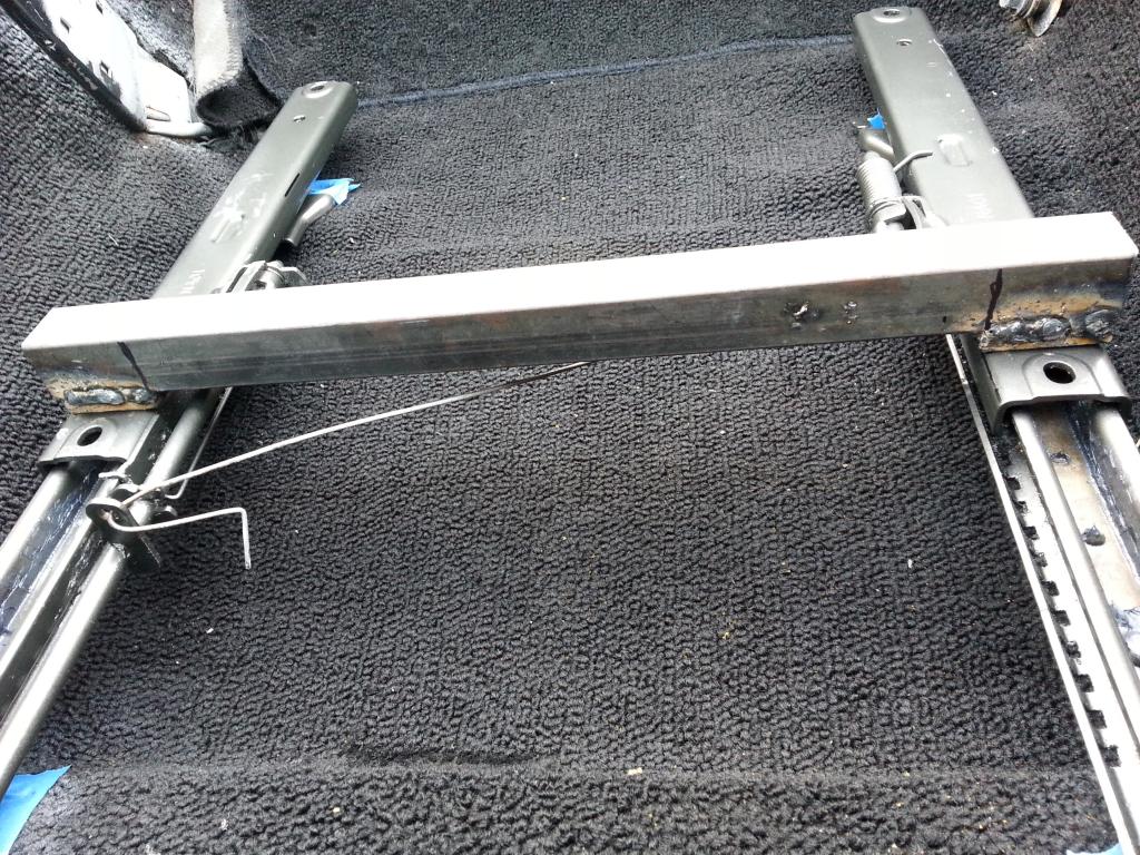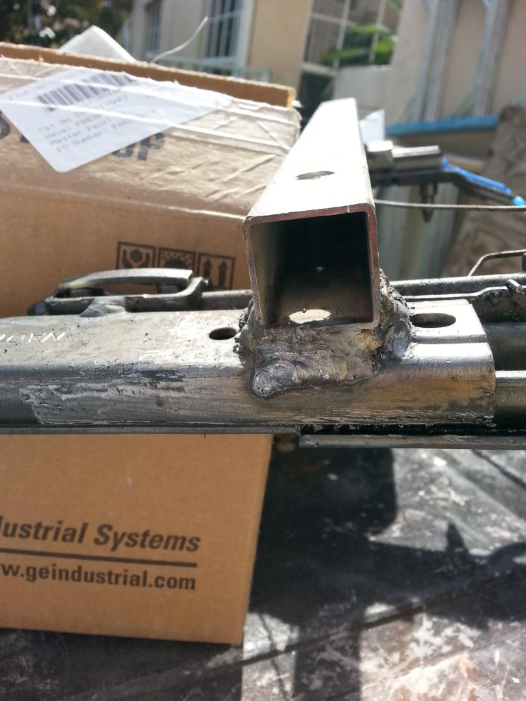 From there, I took the rail assembly out and ran some weld beads to attach the bar to the rails permanently. Welds came out a bit ugly, I should have prepped better in order to get pretty welds, but I got plenty of penetration and they are very solid. The picture makes the welds on the sides look a lot bigger and uglier than they are lol.