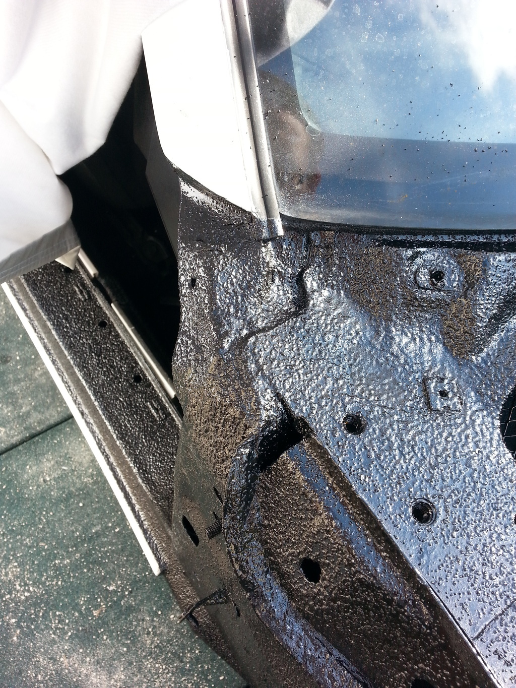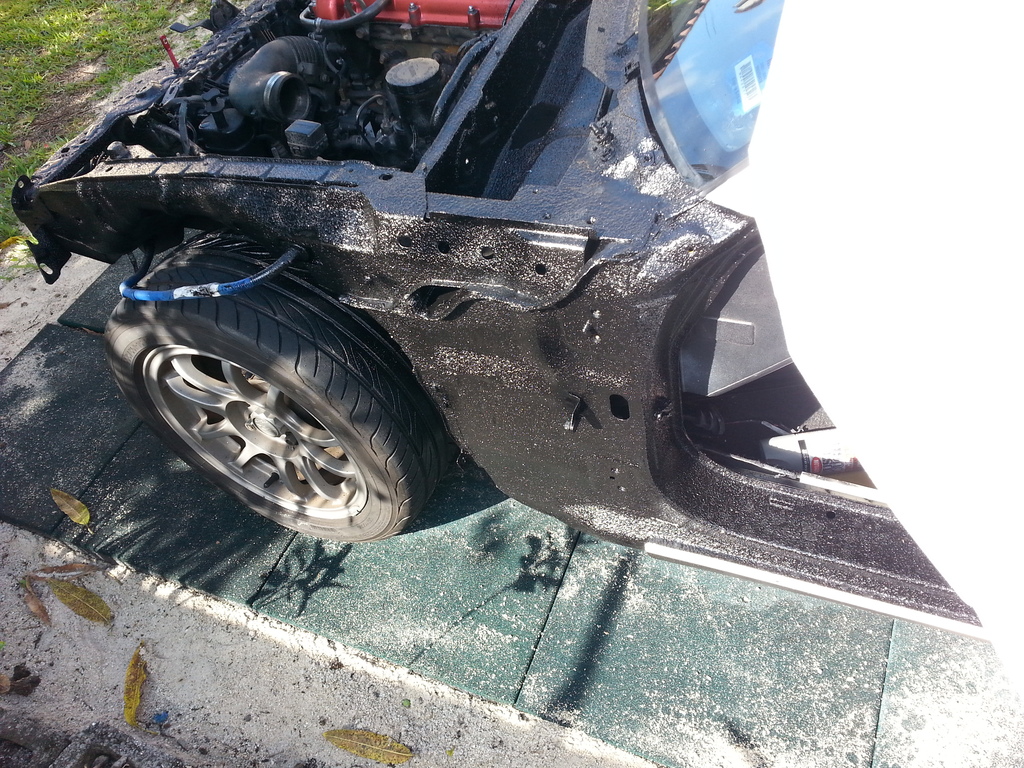 Let's see the Miata try and rust through that(All rust scraped to bare metal, rust proof primer, gloss black, bedliner)!