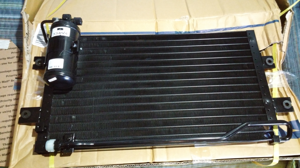 When taking out the old condenser, I found out that the bottom fitting was cross threaded. So, besides replacing the condenser, I need to replace the section of hose there in order to get a good seal. I wonder if that is where the system was leaking from. I sometimes get angry at this car for being so difficult, but I end up cutting it a break. I think of it as a sort of rescue dog. What's to be expected from a car that looked like this when I bought it? (I made the vent in the hood, it came without that, but the rest of the ugly was there lol).