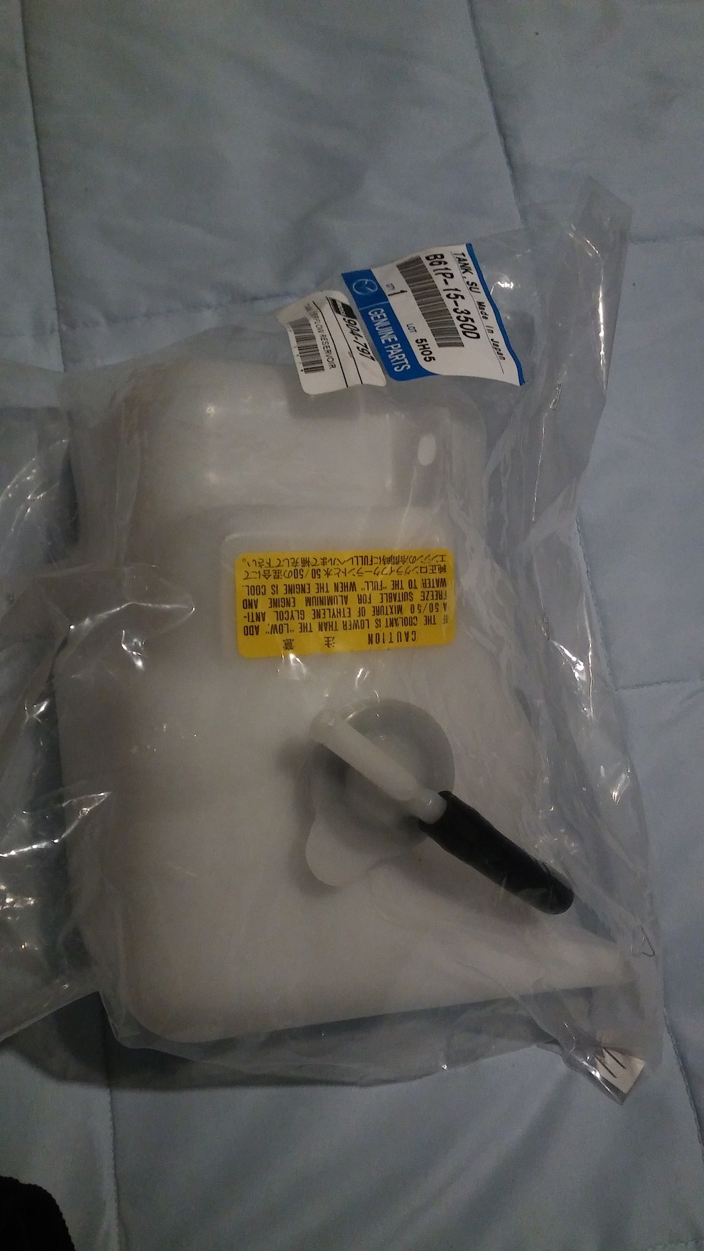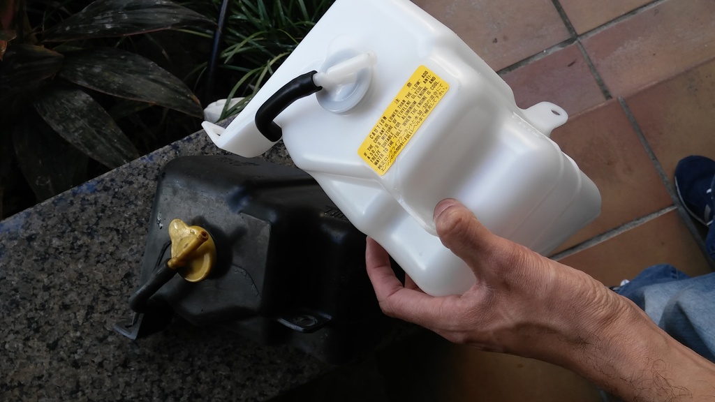 I suspected for a while that my coolant bottle might be leaking as I would always find it empty. It also looked ugly and yellow, so I had painted it black. This meant that I actually had to open it to check the level...annoying. So I went to Moss Miata and got a brand new one. Now I get to see the pretty green fluid in it.