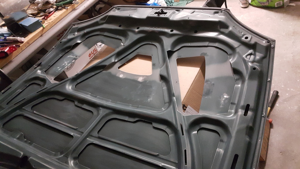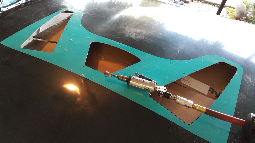 I scored a deal on a spare hood and started cutting for my Singular Motorsports hood louvers.