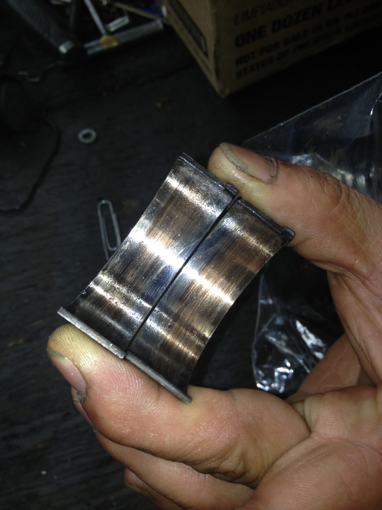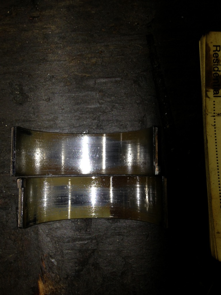 Three of the rod bearings.. I didn't get a picture of the bearing at cylinder 2 but it was pretty badly gone (clearance was .0024")