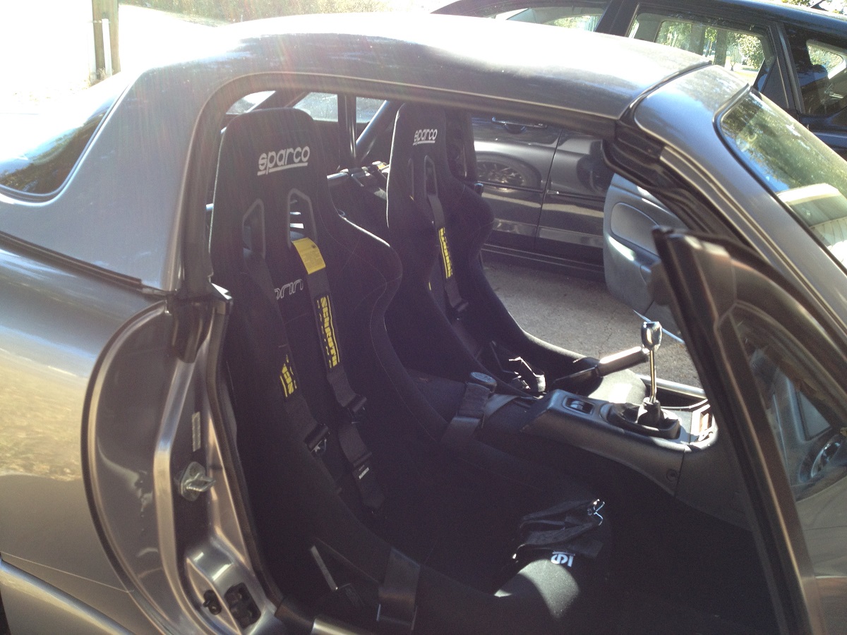 I installed my Sparco Sprint seats and Schroth Profi-ii ASM FE harnesses with the dual sub belts. I'm using the "tall driver" brackets from Fab9 as well.