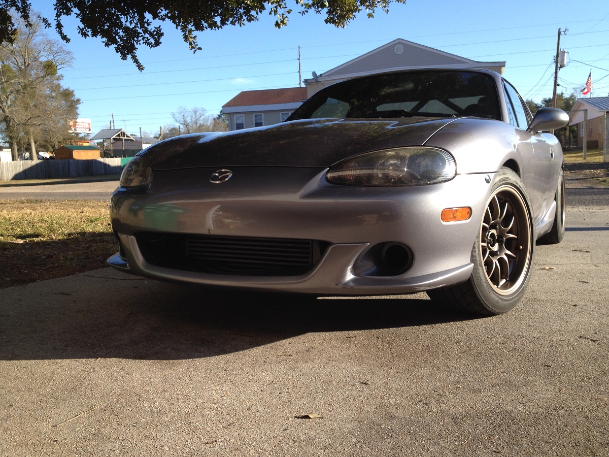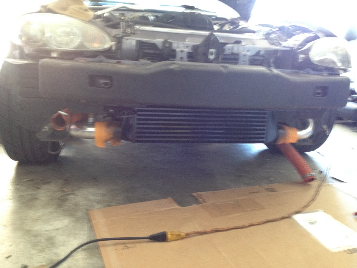 While I had the bumper off I decided to see what the front end would look like with the brake ducts painted black. I've also been debating upgrading my intercooler with a Fab9 one and also wanted to see how the black would look. I sprayed a light coat of black paint on the front of my current intercooler to see what it might look like. I'm not sure how I feel about the intercooler being painted though.