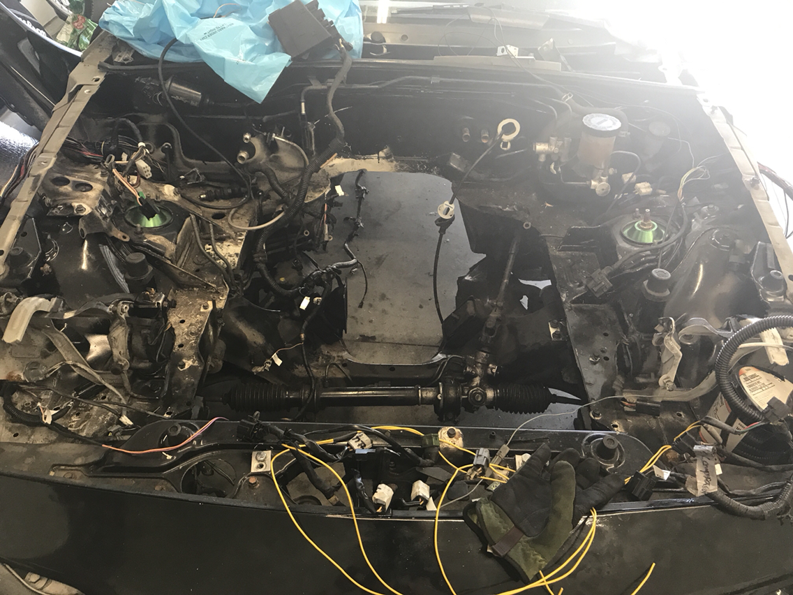 Started tearing into engine bay to get the car prepped to power wash crud off of it and to degrease, sand,primer, and paint! Found motor mounts torn which explains a little but about why getting into gear has been tough. Making car have a manual rack as well for full race effect! Any thing Else I should do while undertaking this effort? Aka what am I missing?