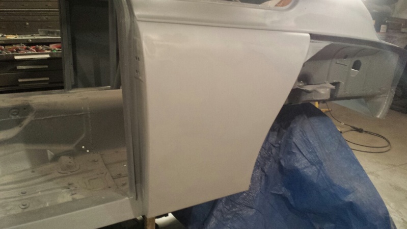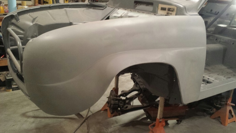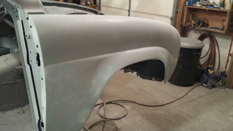 Nothing photo-worthy but I logged 5 hours yesterday and 12 today just filling pinholes and scratches, build priming and sanding to 320 grit. Got one door and three fenders completely done and put away. I have all day tomorrow in the shop so I should be done with major components. I don't have a firm date for paint yet. Waiting on the painter's schedule. Tentatively the last weekend of January.