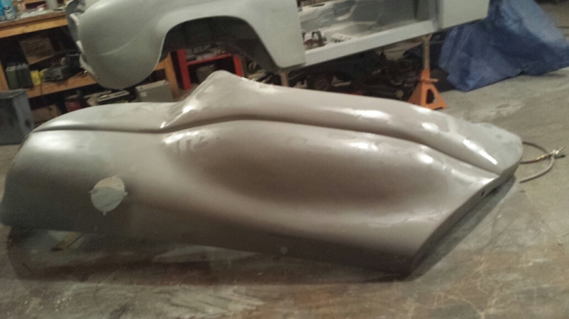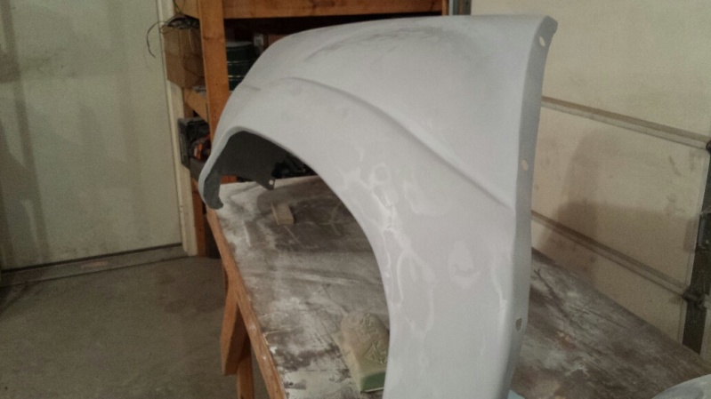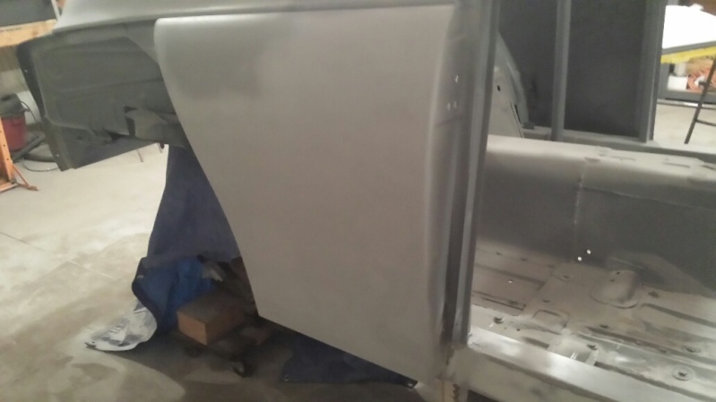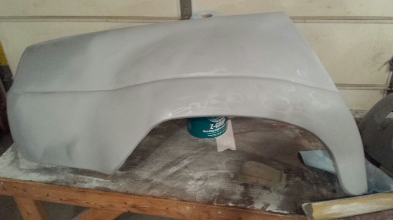 Got the rear fenders done. As they were the most hacked up they were the most work. Again, a very light coat of primer just to seal them up. They still need work. It becomes obvious with the primer guide coat. Just have the rear valence and passenger part behind the door and the two doors to finish. All are close. Should easily finish roughing them out by New Years day.