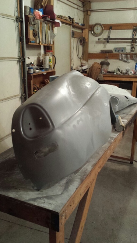 Put in several hours the last couple of days in between Christmas stuff. Got several parts through 80 grit and a very light coat of poof-can primer to close it up. Working on rear fenders now, then a bit of touch-up work needed on doors. They are both 80% done. Should be ready to prime and start dealing with the little imperfections in a week or two. Going to have to get some professional help then. I've gone as far as my non-existent skills have taken me. This is the first time I've ever done any sort of bodywork.
