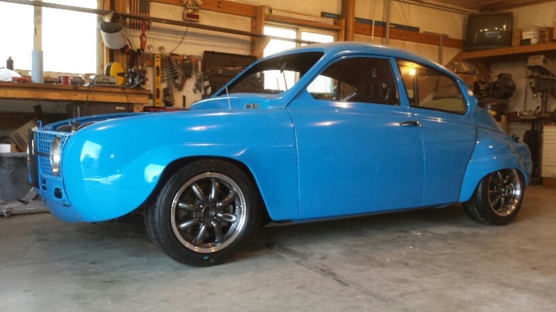 It would be cool but you can see that the right fender was bumped up factory for it. Surprisingly when I installed the Miata exhaust the SAAB muffler hanger came out right on top of the stock Miata poly mounts.