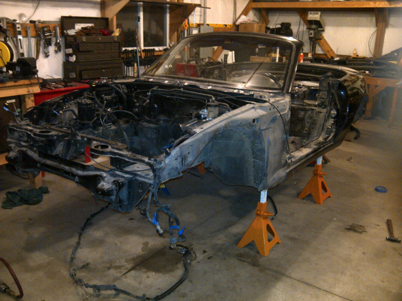 I still need to cut out the front rails, subframe mounts and shock towers but I'm waiting for the weekend when I can have both cars side by side in the shop.