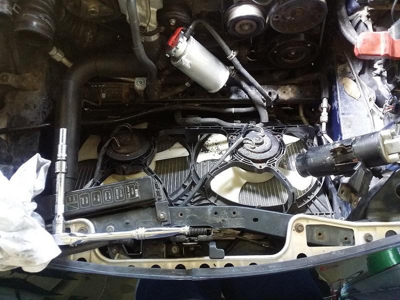 So I was pretty intimidated taking the entire front assembly of the motor apart like airbox, battery, intercooler, and upper radiayor hose but it wasn't all that bad.