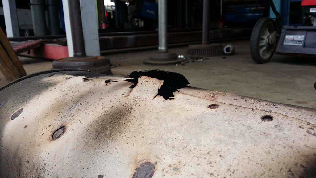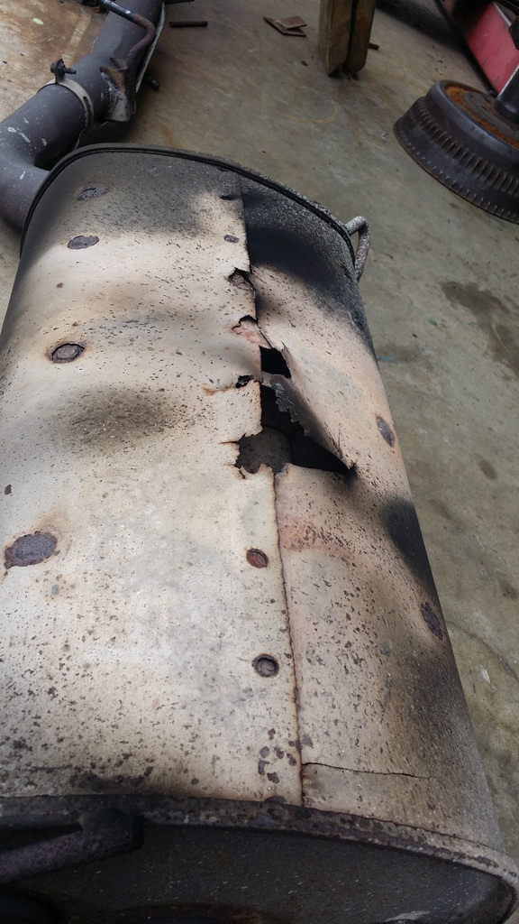 So I got a used exhaust from Pettit racing because there is a giant hole that's unrepairable on top of the oem muffler. It's a 3 inch far can. Well see how long this will last. I have my eyes on a full titanium cat back.