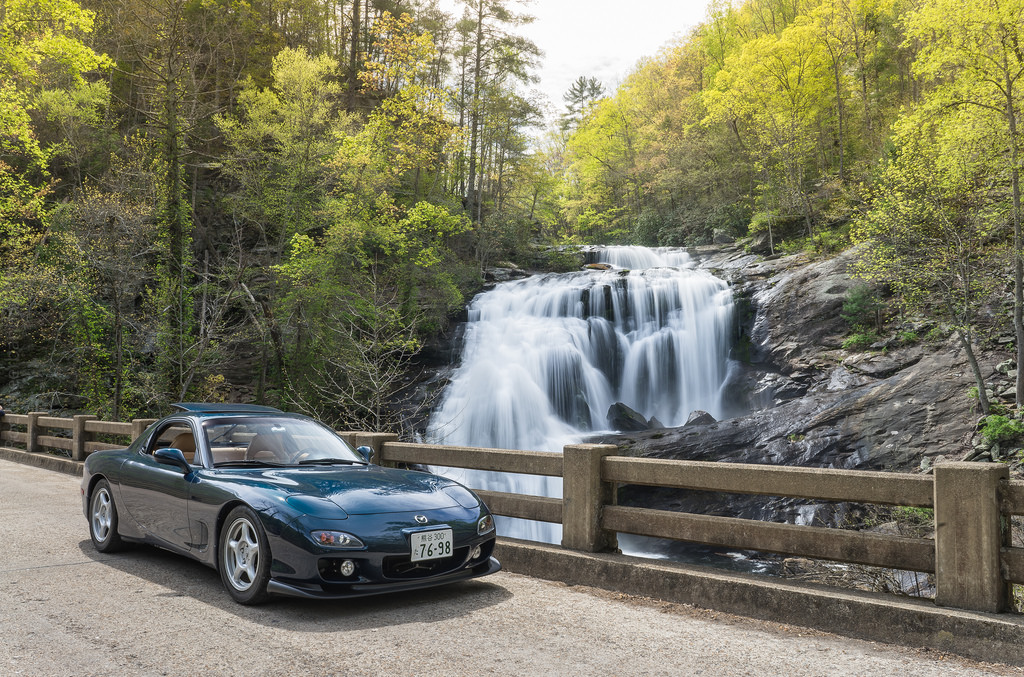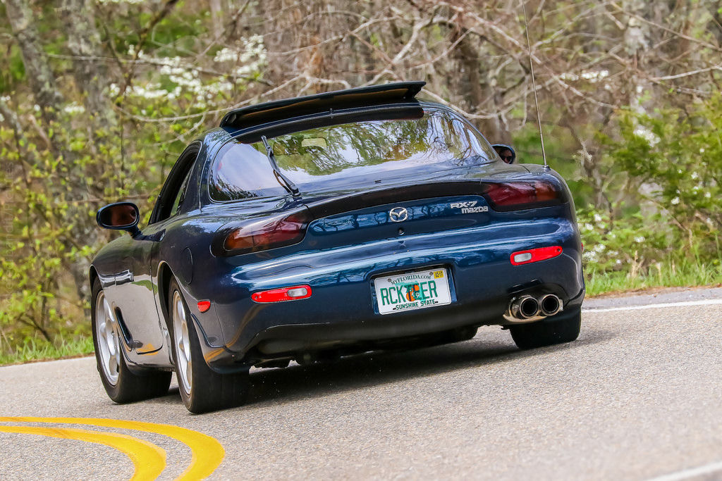 The next day the group did a run on the Cherohala Skyway. Before we headed out I wanted to know why the car was feeling so out of place and my confidence was out the window. The car didn't feel right to me. I come to find out the dampening on the front struts are at two extremes of full stiff and full soft. NO wonder. This isn't the car that feels great out on an autocross coarse pulling times right behind BSP class. So I dampened all four struts 8 clicks from full stiff. I also was too high on all four tires. I was maximizing my fuel economy up to Atlanta because we all know rotaries are excellent on mpg. Not.