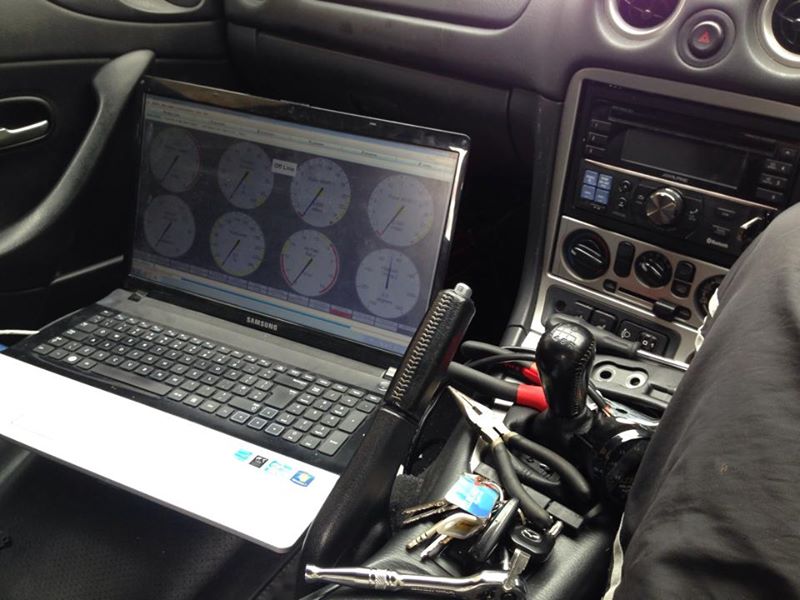 After some messing around trying to remove the stock o2 sensor, I finally fitted the MS2 and AEM Wideband. Up in the air next to my cousins SR20 powered P10 Primera