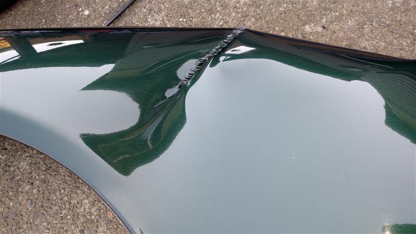 The driver's fender had a crease with a very interesting stress result in the paint.