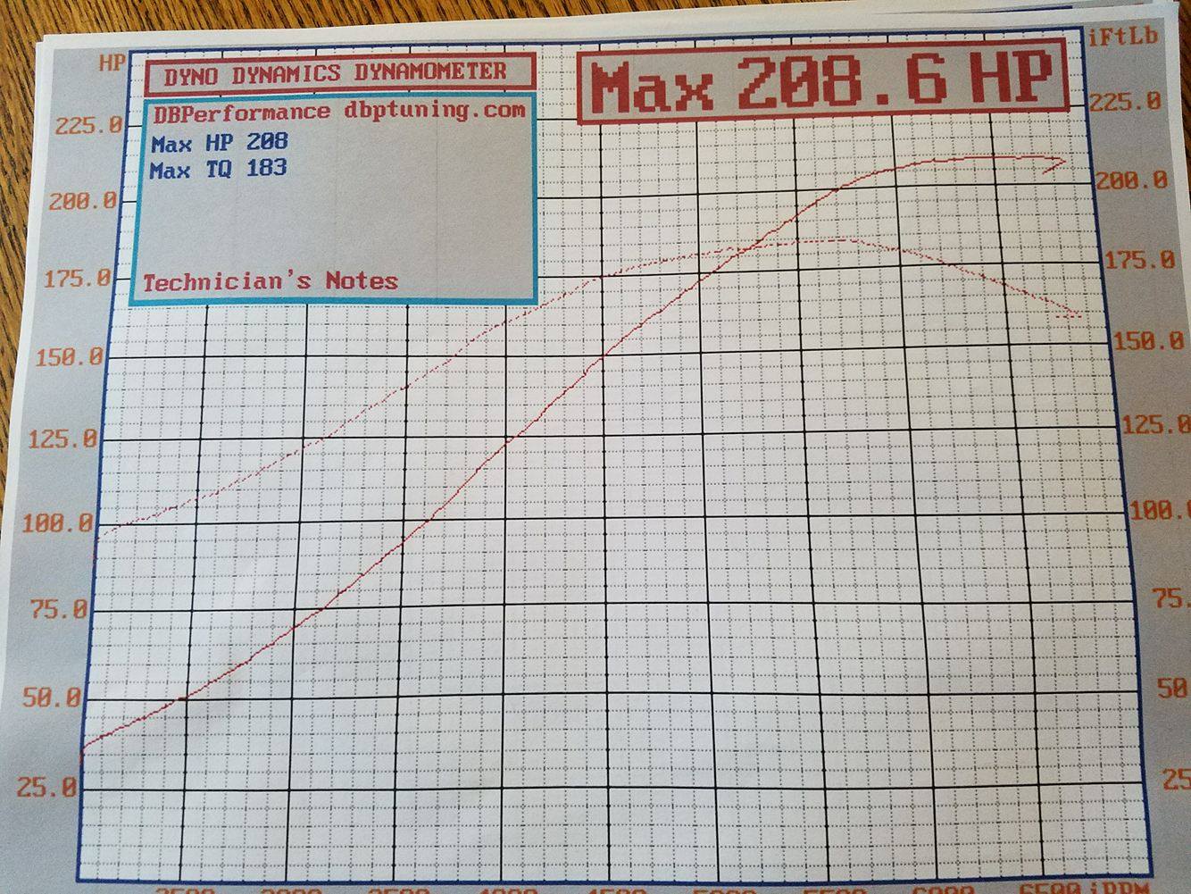 The power and torque curve on the 2 dyno graphs are near images but basically just shifted the power range up. Full boost is still 3700-3800rpm, no drop offs, or cut outs if not a smoother power curve on the updated one.