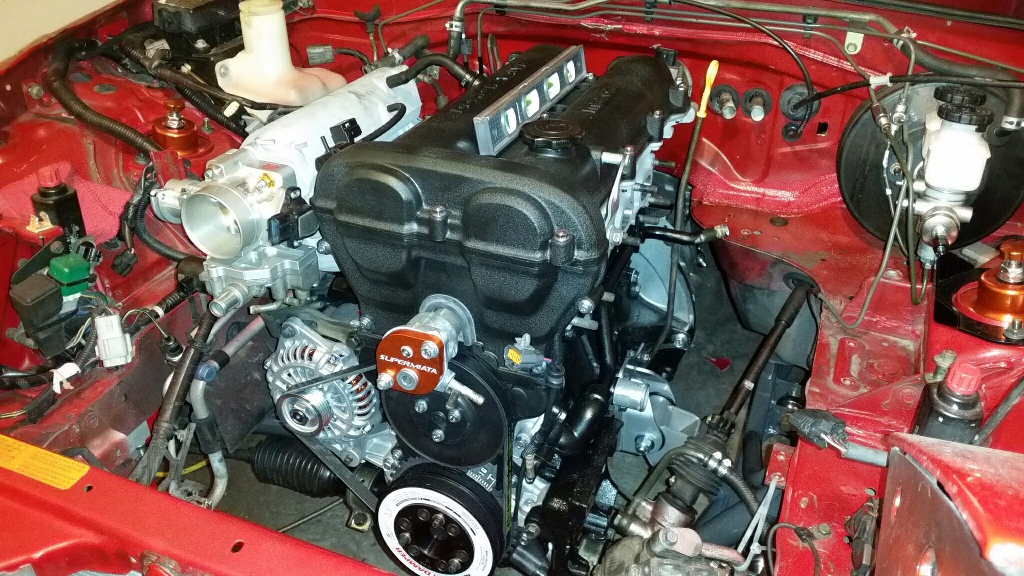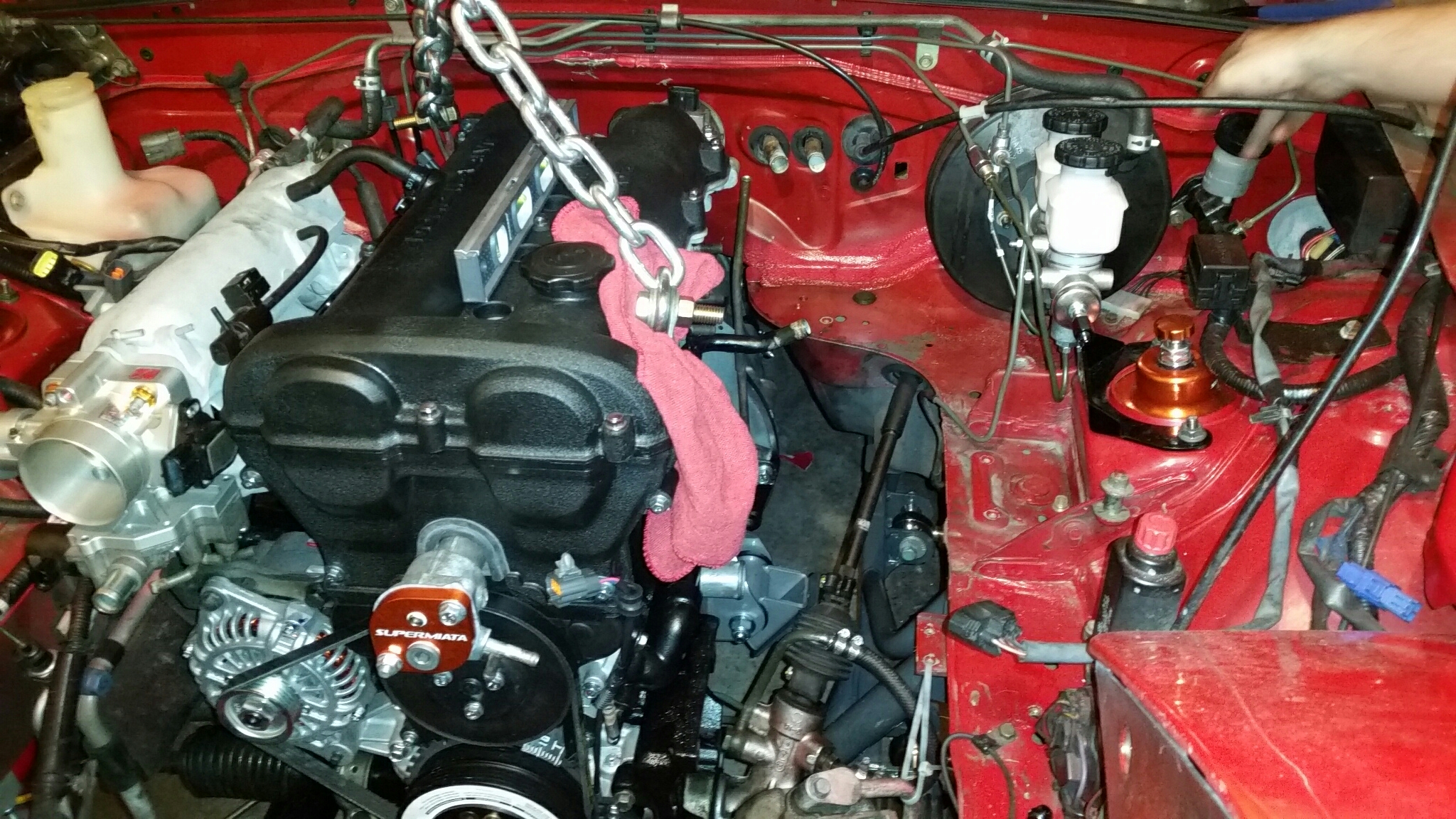 Put a level on the valve cover and tried to get things with the 1-2 degree rear angle as described by KMiata. I guess that's the approximate angle the stock setup is. That was followed by prayer.