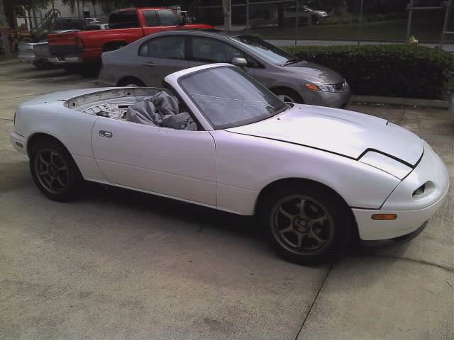 Hi everyone, Im gonna tell you just a little bit about my build. It is a 92' miata that was recently a n/a road course car. completely gutted, etc.. I just recently sold one of my toys so I could kill myself in this rocket ship. This is no ordinary miata. Although it has been done by alot of people now and isn't new to anyone on here it will be a deffinate wake up call to all the ricers here in FL. Now on to the good stuff.