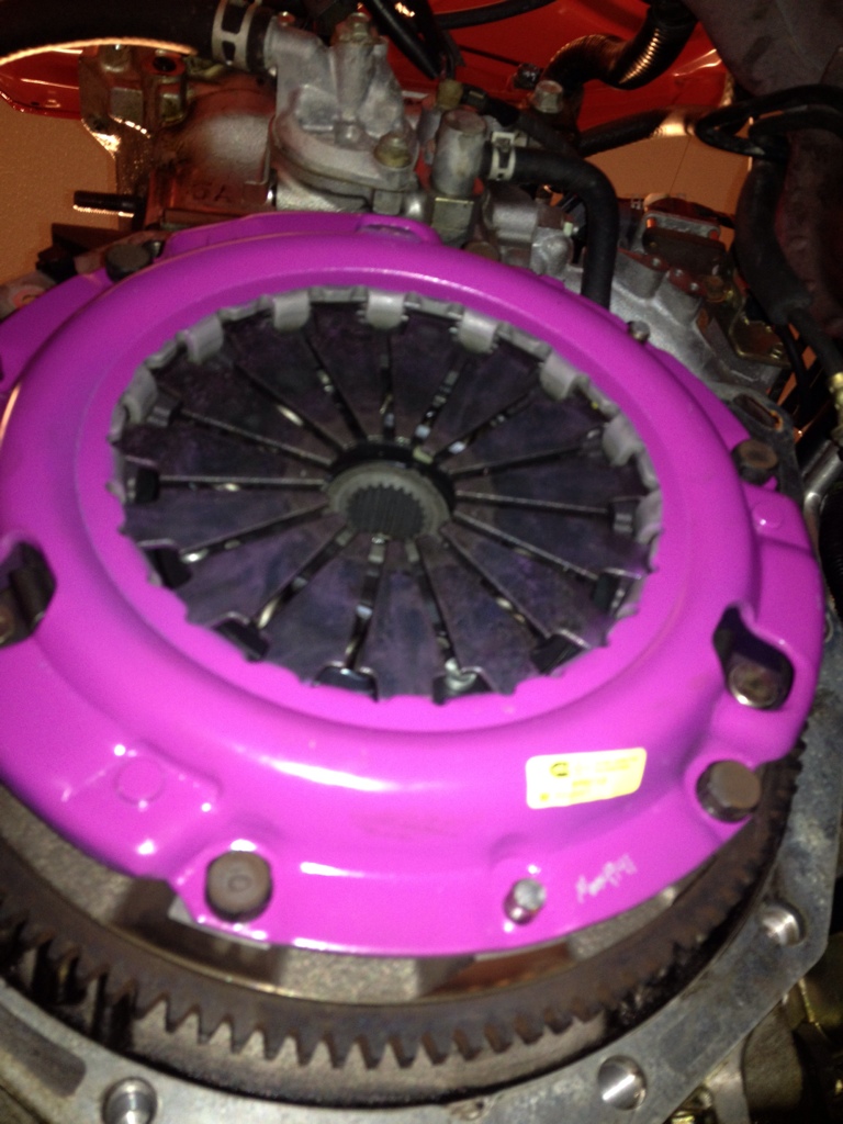 got the pressure plate and clutch in place and got the transmission back up and in. had trouble with that bracket though. and thinking it was going to be quick and easy with two people, we didnt suspend the transmission up with rope, so after about 25 minutes of messing with it, that transmission felt like 300 pounds haha