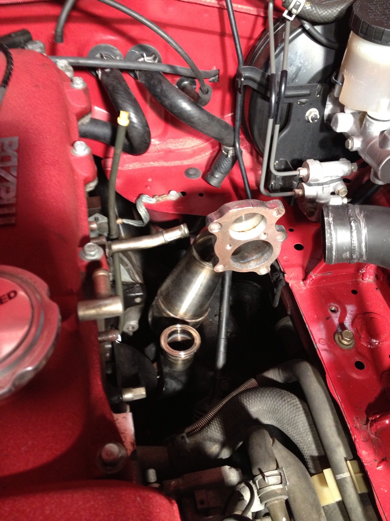 put the manifold and turbo in to see the fitment with the downpipe and ewg dump tube. there seems to be an issue with something. The dump tube almost seems to be too small, but barely. vband'd it on there and everything was in place other than the ewg, (ie, the manifold, turbo, downpipe, and dump tube).