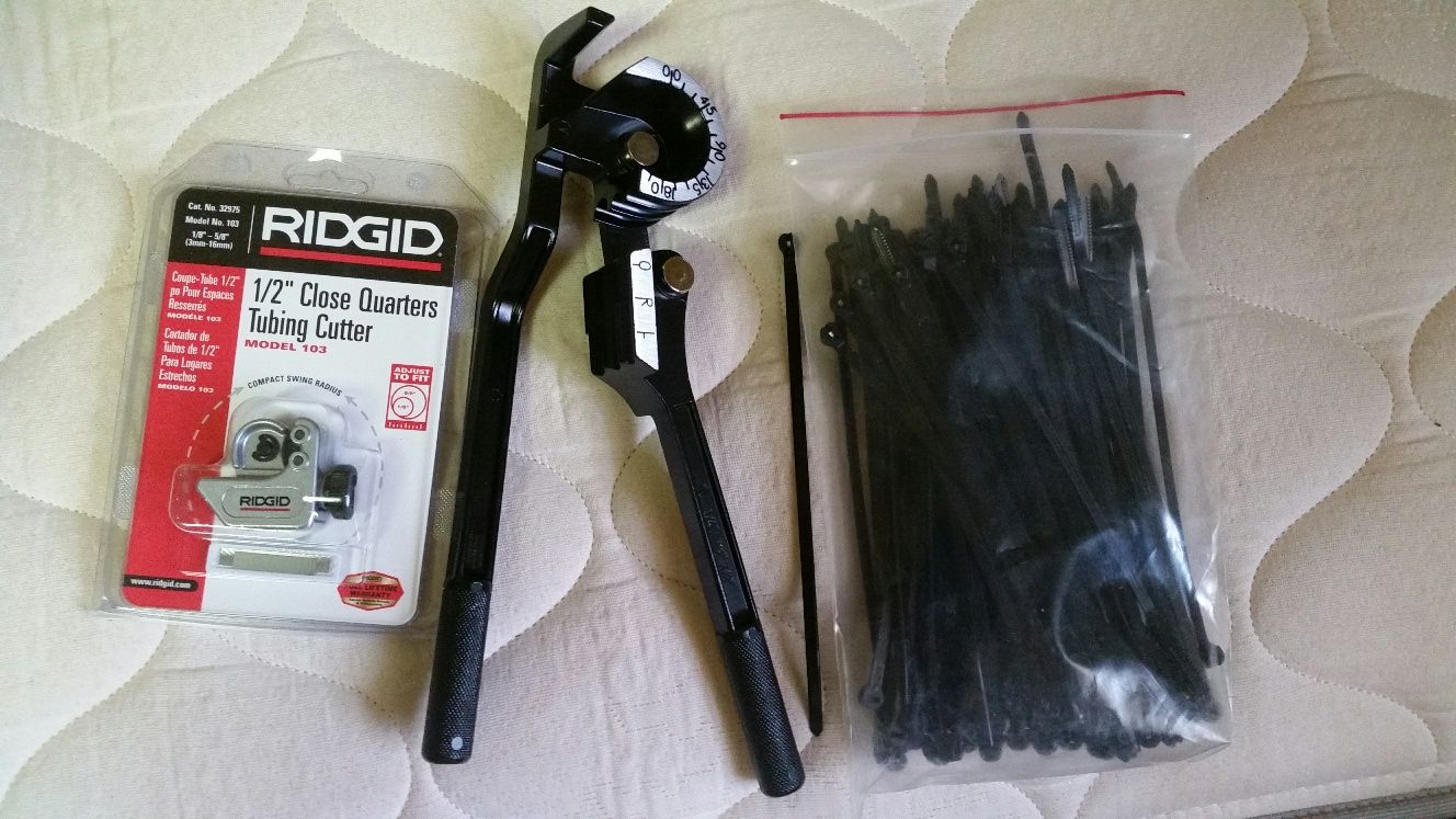 In preparation for the novec kit, I've purchased cable tie saddle mounts, tubing cutter, thomas and betts cable ties, small, short screws, and a tubing bender.