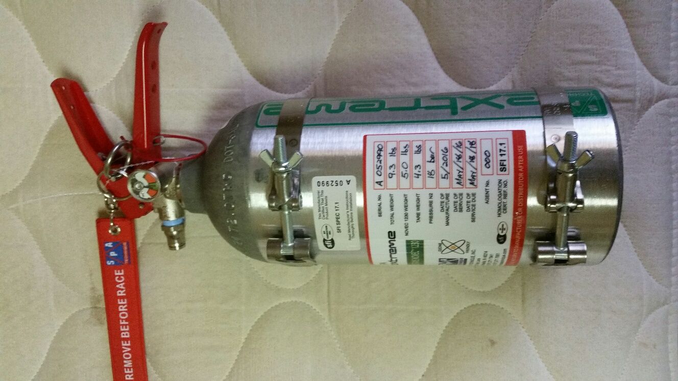 The 5 pound canister system has been tested to function properly with three nozzles, so that's what I got. Two nozzles in the top corners of the engine bay, aimed diagonally across engine, and one nozzle in the cabin facing the occupants. I'm thinking of mounting that nozzle on the passenger side trans tunnel area, just above the canister. The canister is supposed to be mounted parallel to the trans tunnel, but perpendicular to it in front of the passenger seat is fine too.