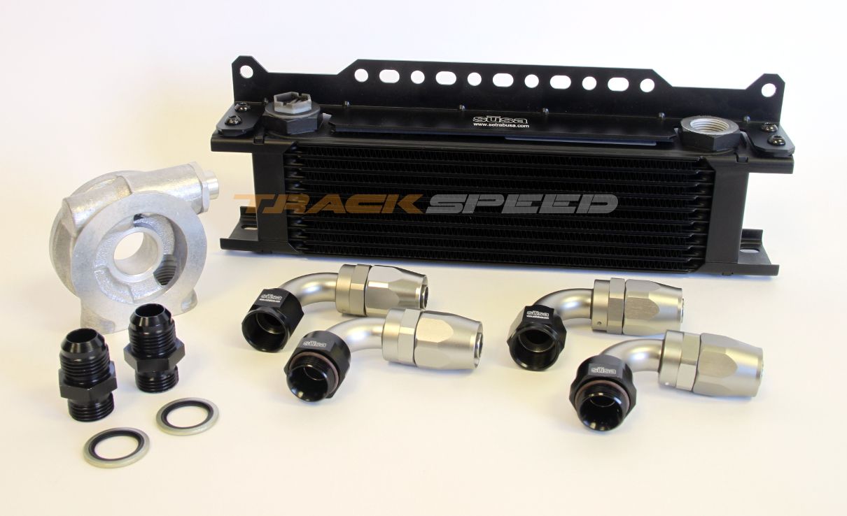 Leave your OEM oil/coolant mixer in place. That will warm the oil up in cold weather. The Setrab plate we ship has a 205*F thermostat, higher than the standard unit that other companies ship with their kits.