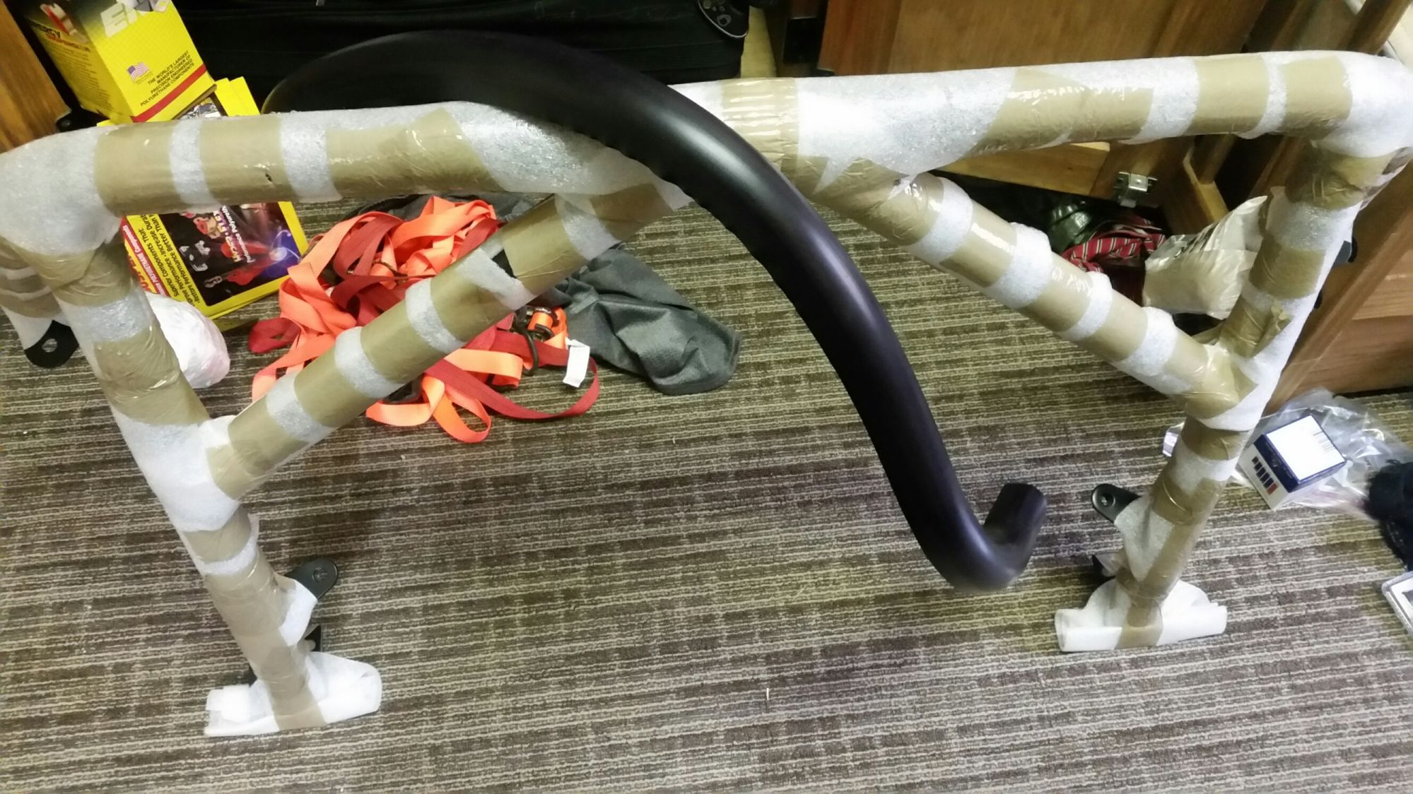 Hard Dog Hard Core M2 Roll Bah (hopefully) fits the rear soft top glass and under a hard top! Its not as glamorous, but I left the wrapping on for paint protection. Pictured is the high density foam "padding" just draped over the bar. This feels like hard plastic, and has barely any give...