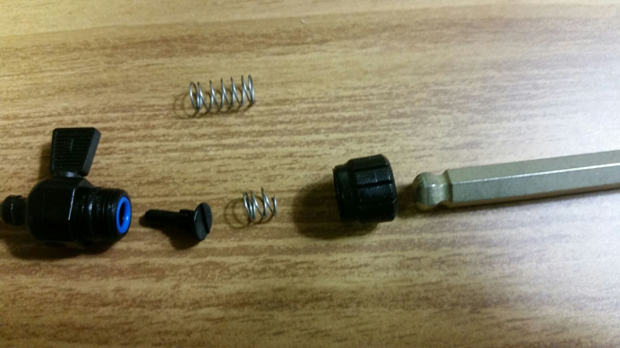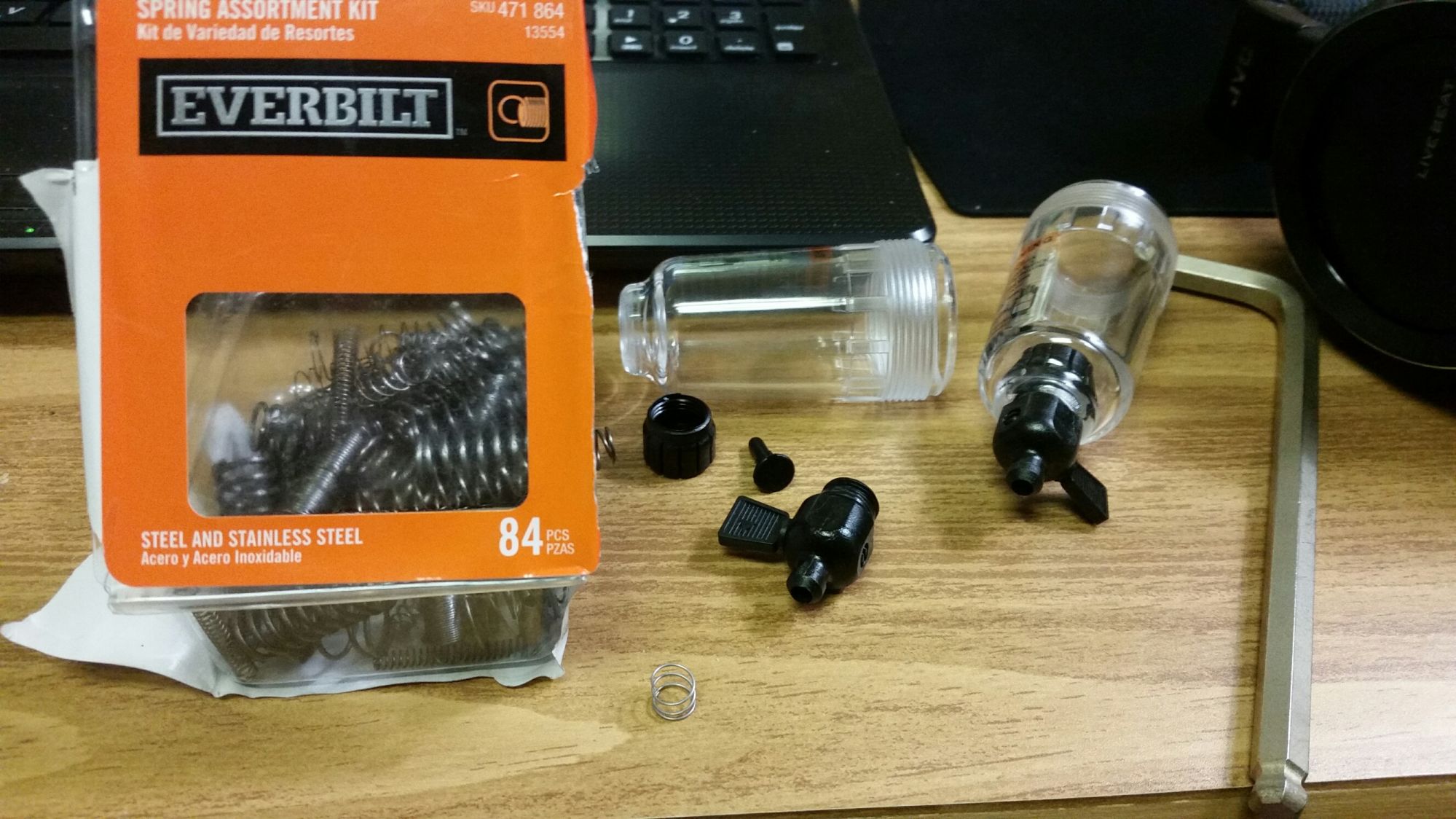 Just a small update, I finally got around to cutting a spring to size to fit in the catch cans I'm making... Taken from Deezums Catch Can thread... I'm using the Husky compressor air/water separator from Home Depot.