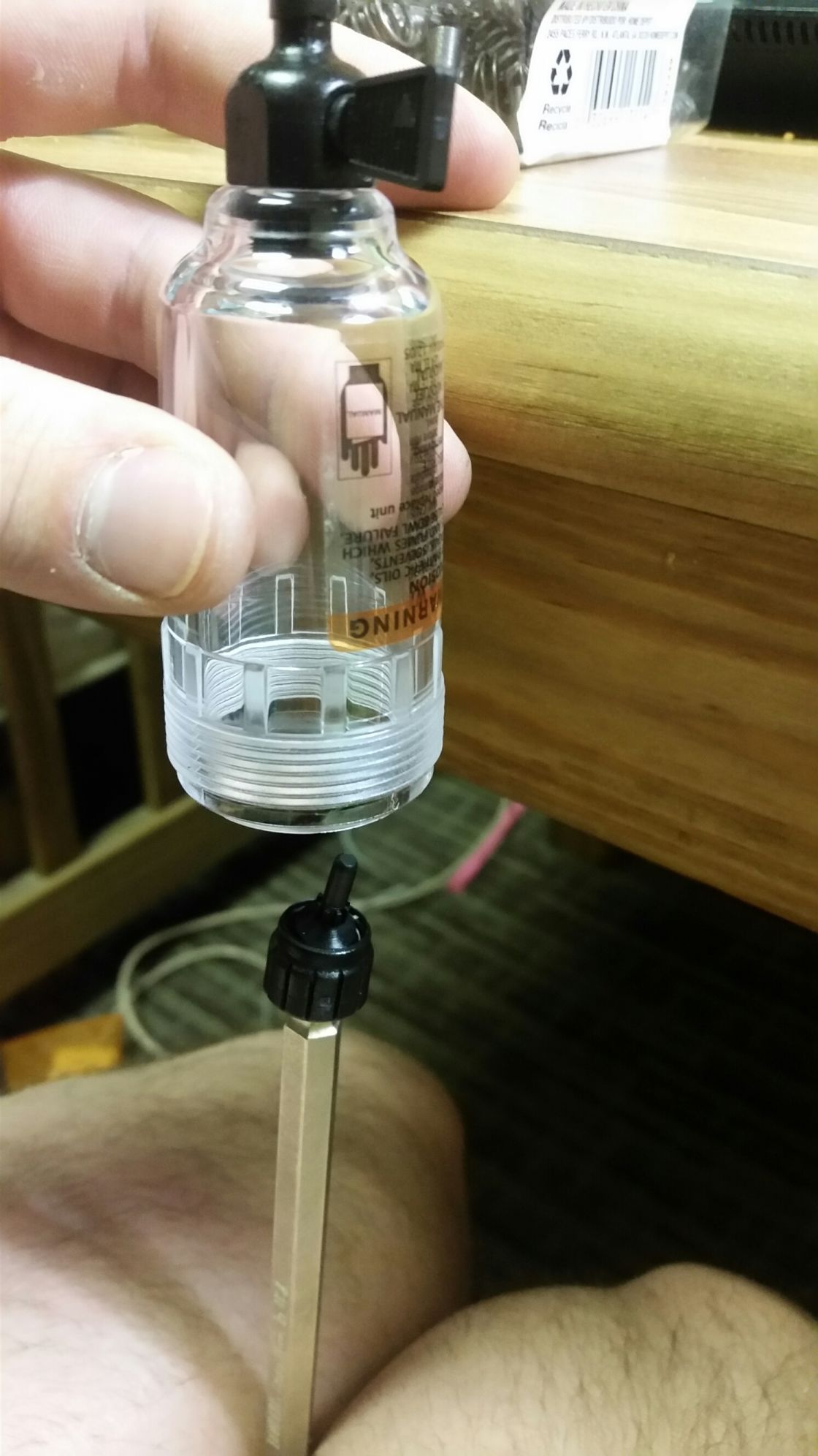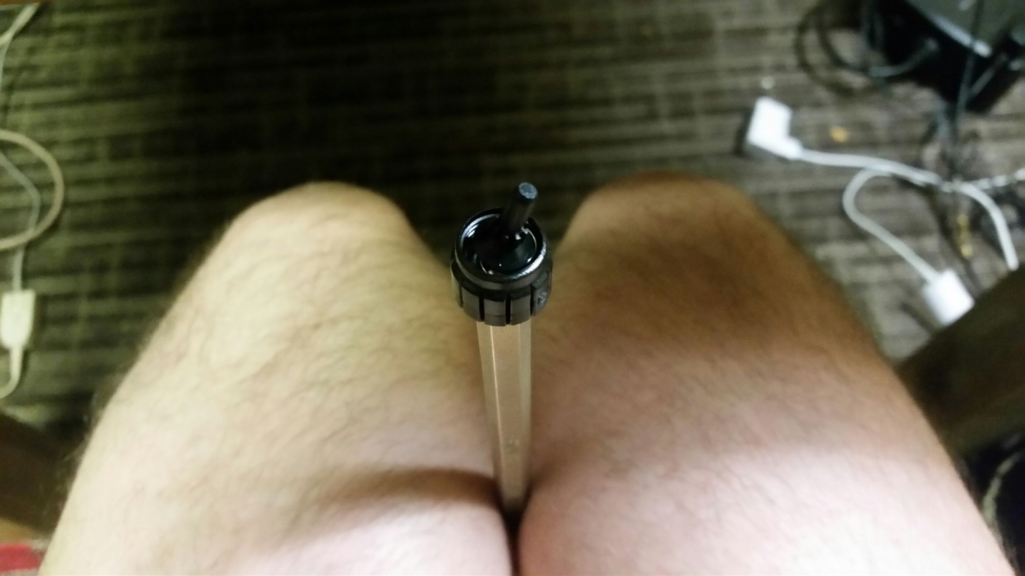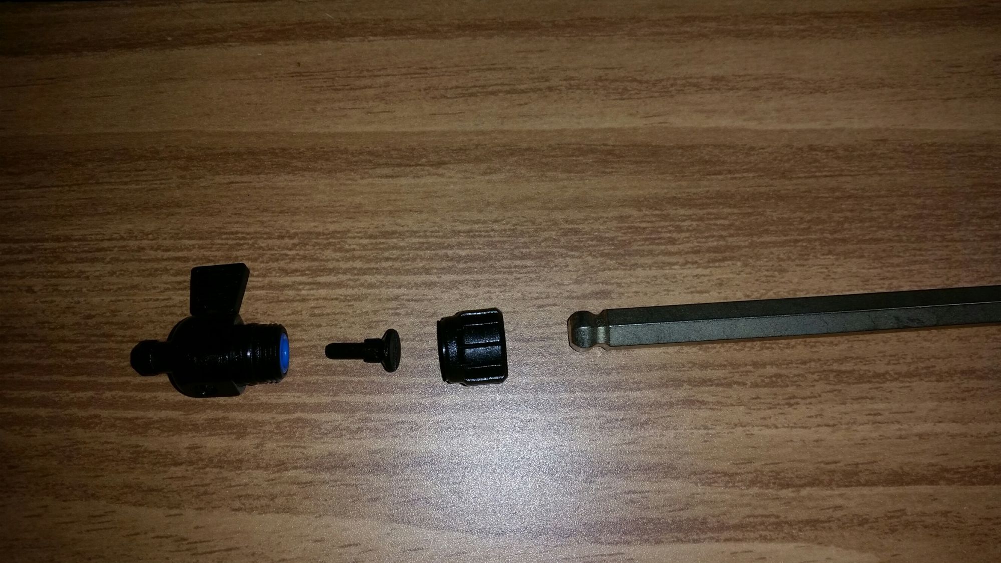 This is how I reassembled everything, after a few different methods, I settled on squeezing the allen wrench between my naked Italian thighs, and balancing the stuff on it...