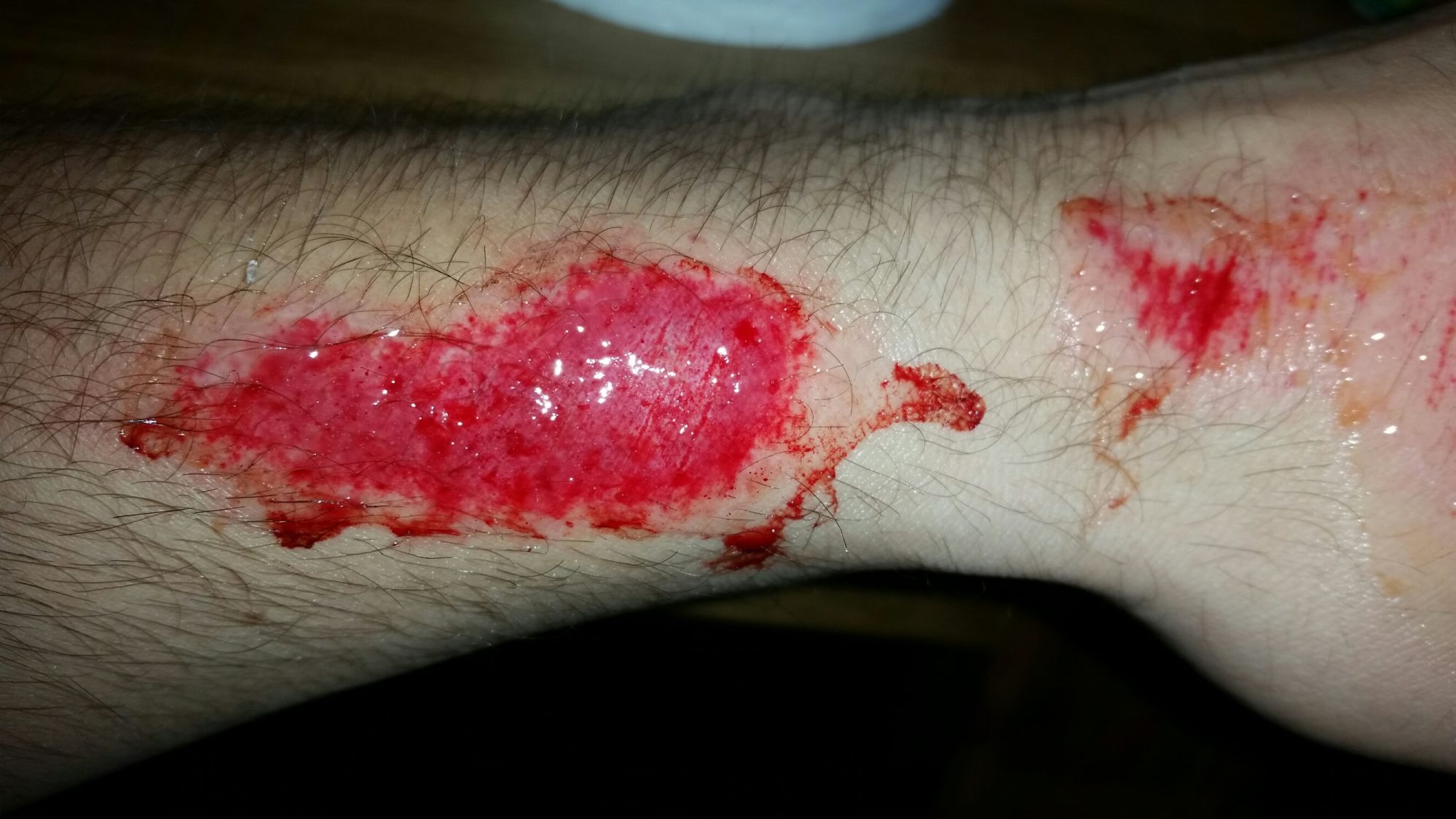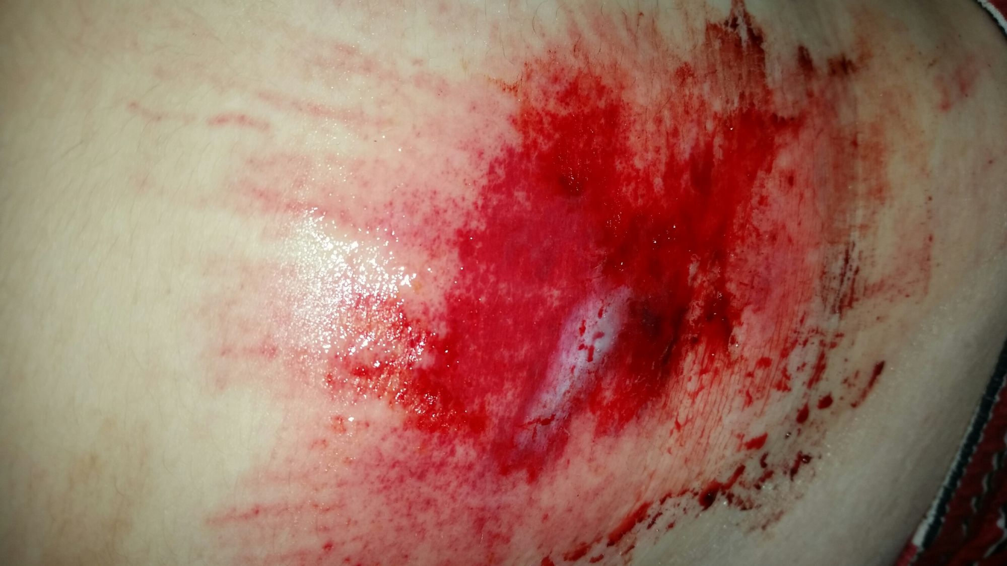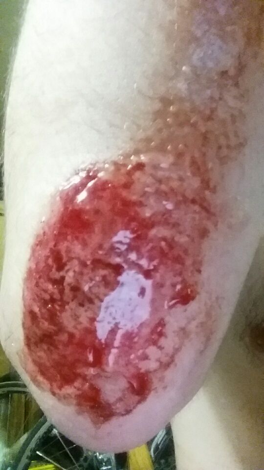 Got some good road rash, scraped through to the fat cells through my clothing.